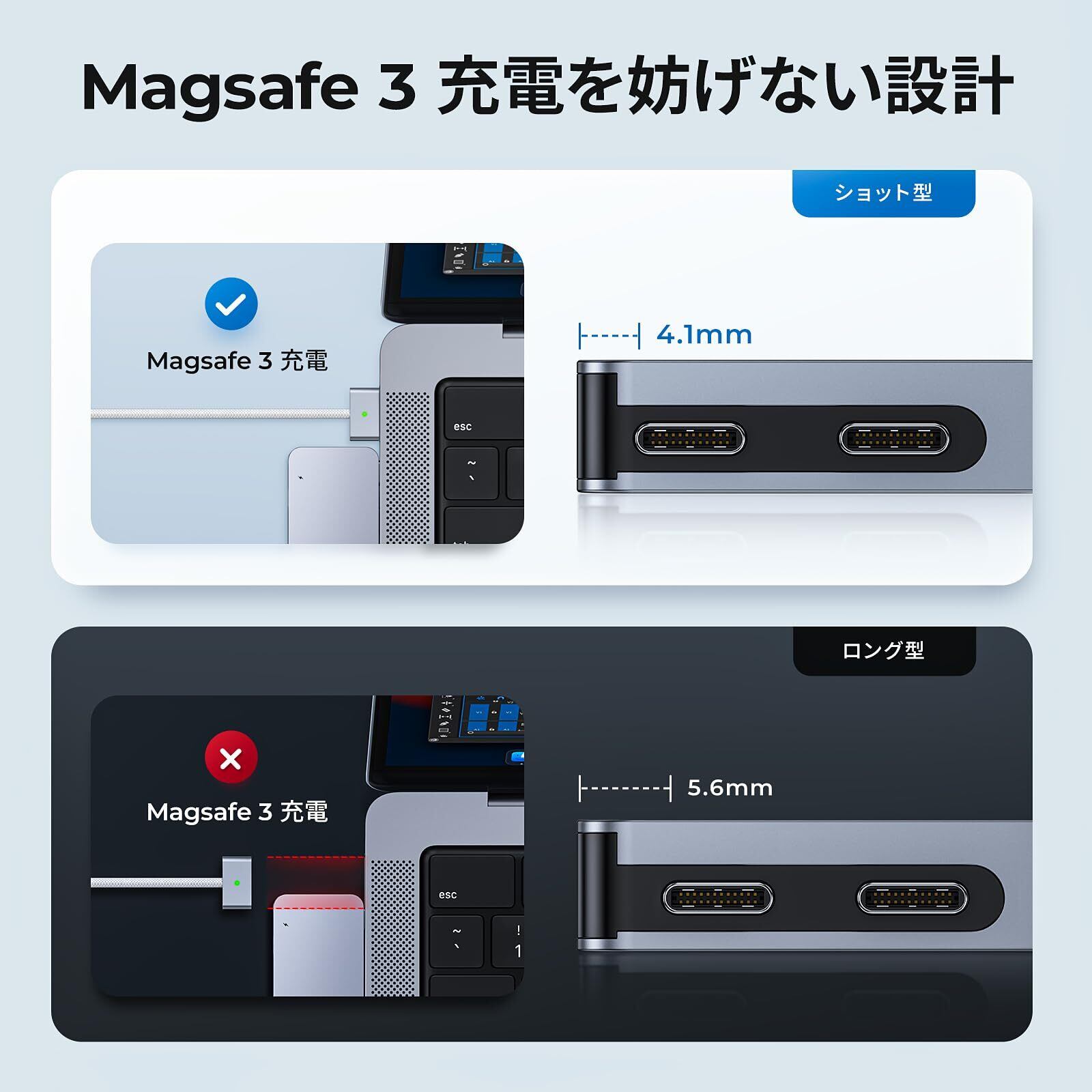 特徴 Thunderbolt 3高速データ転送・4K/5Kディスプレイ出力、PD充電、軽量コンパクト多機能