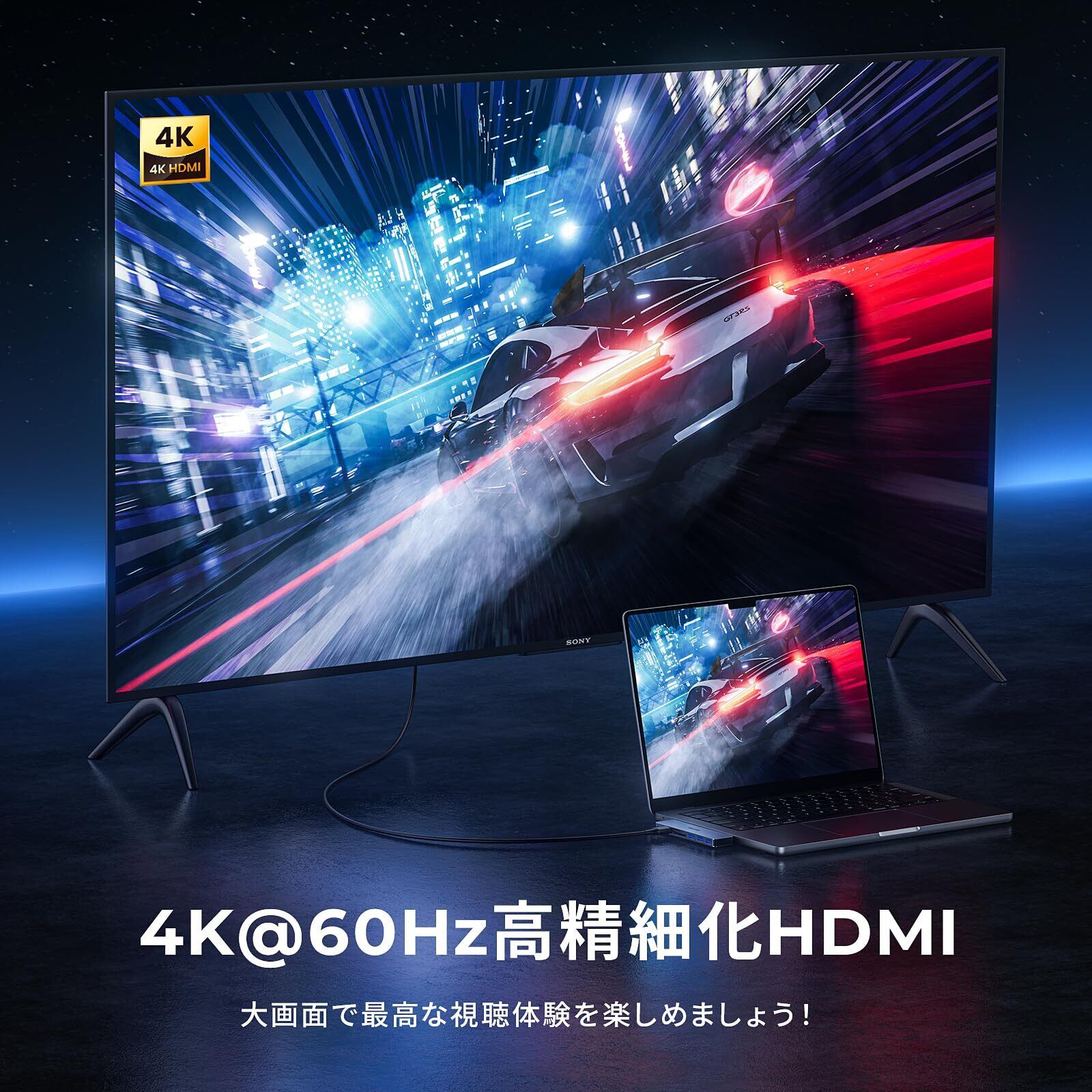 このハブは、3つのUSB 3.0ポート、SD/TFカードリーダーを含む多機能なポートを備えており、USBフラッシュドライブや外付けハードディスク、カメラとの接続が簡単に行えます。作業の効率を飛躍的に向上させることができます!