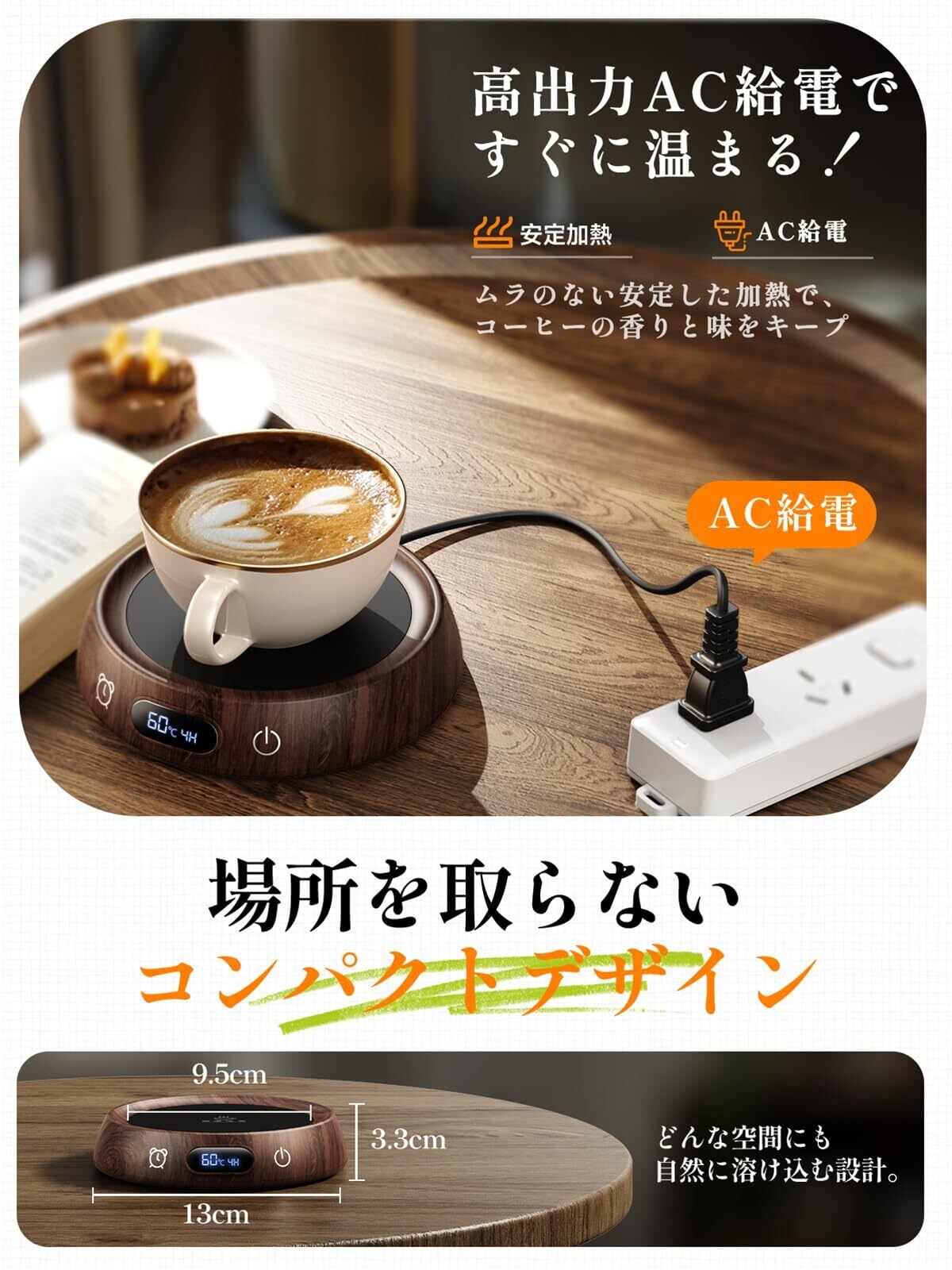 カップウォーマー 【40℃~80℃設定、記憶機能付き】 コーヒーウォーマー 5段階温度 保温コースター 2-12Hタイマー マグウォーマー 急速加熱 ドリンクウォーマー 静音 コーヒー/お茶/水など飲み物 マグカップウォーマー フードウォーマー 4時間自動オフ オフィス/家庭用 誕生日/クリスマス プレゼント PSE安全認証済み AC100V,50/60Hz全国対応(木目)