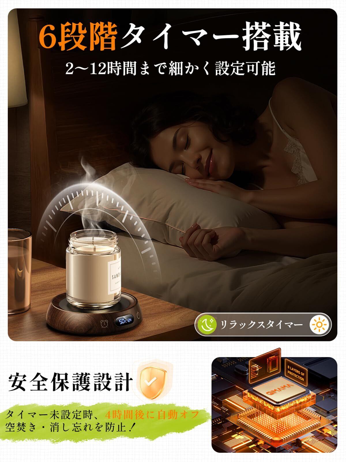 【タイマー設定で安心&省エネ】本製品は2〜12時間のタイマー設定で必要な時間だけしっかり保温。長時間使用による過熱や電力のムダを防ぎ、4時間自動オフ機能で安全性と省エネ性を両立。うっかりタイマーを切り忘れてしまう方や、就寝前にアロマの香りを楽しみたい方にもぴったり。冬の日常に寄り添う、心温まる便利グッズです。
