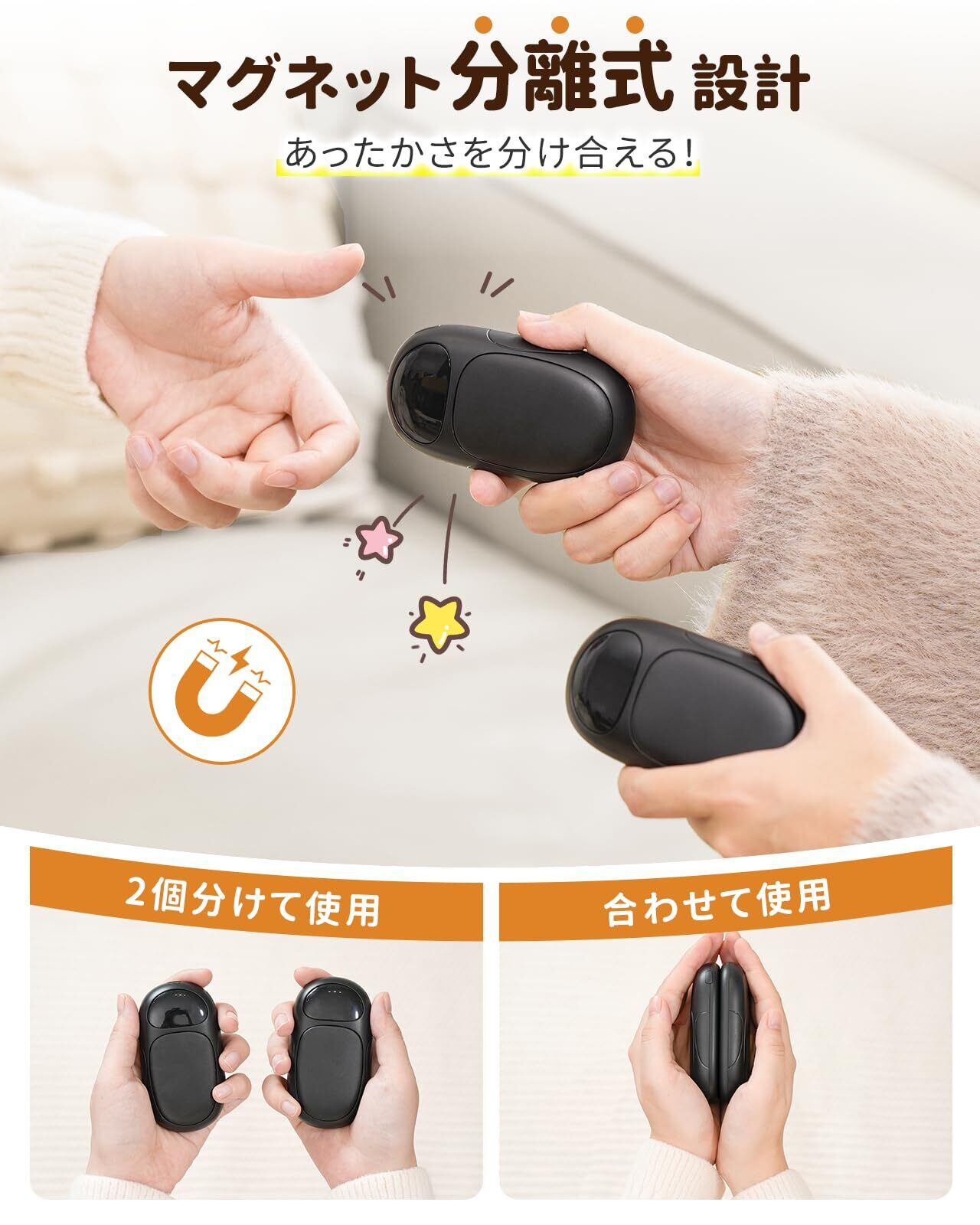 【2025新登場】 HAGOOGI 充電式カイロ 2秒急速発熱 3階段温度調節 【小型 超軽量 磁気式/分離式設計】 電気カイロ 2個セット 6000mAh クリスマスプレゼント 最大14時間連続使用 持ち運びやすい 5V/2A急速充電 繰り返し利用 旅行 出張 通勤通学用 寒さ対策 ブラック