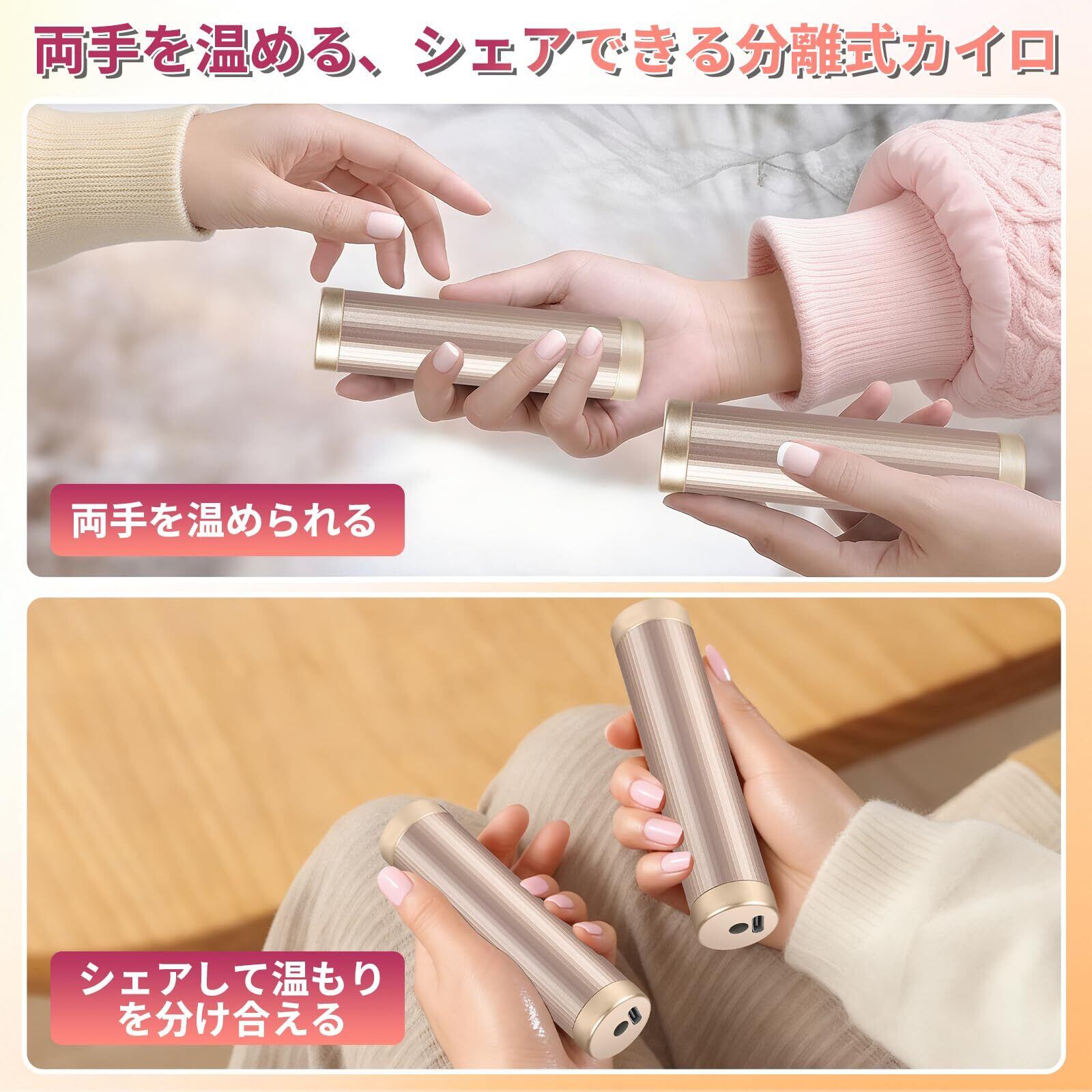 【2025年最新改良モデル 最大15時間発熱】 HUAYAN充電式カイロ USBカイロ 分離式 2個セット 1秒速暖 3段階温度調節 360°全面発熱 14000mAh大容量 小型 超軽量 両手シェア可能 繰り返し使える 急速充電 ハンドウォーマーおしゃれ かわいい 防寒グッズ 上品な仕上げ プレミアムギフト (シャンパン)