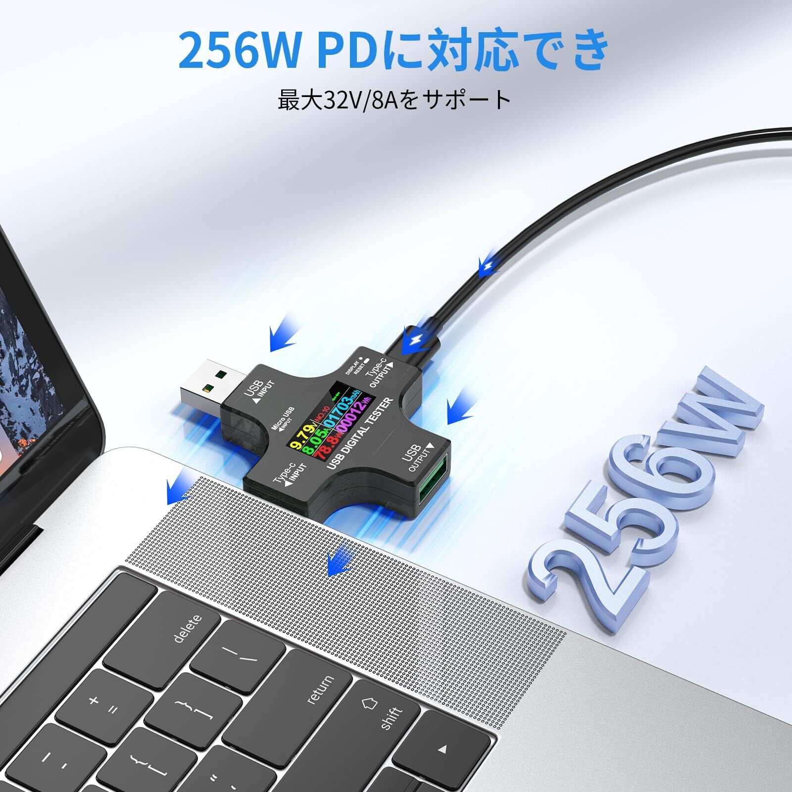 多機能USB電圧電流チェッカー:この電圧器はType-CとUSBAデバイスの電圧、電流、容量、電力、時間、温度、負荷インピーダンス、D ++ / D電圧などを簡単にチェックできます。デバイスの充電状態とプロセスを検出でき事故を避ける。