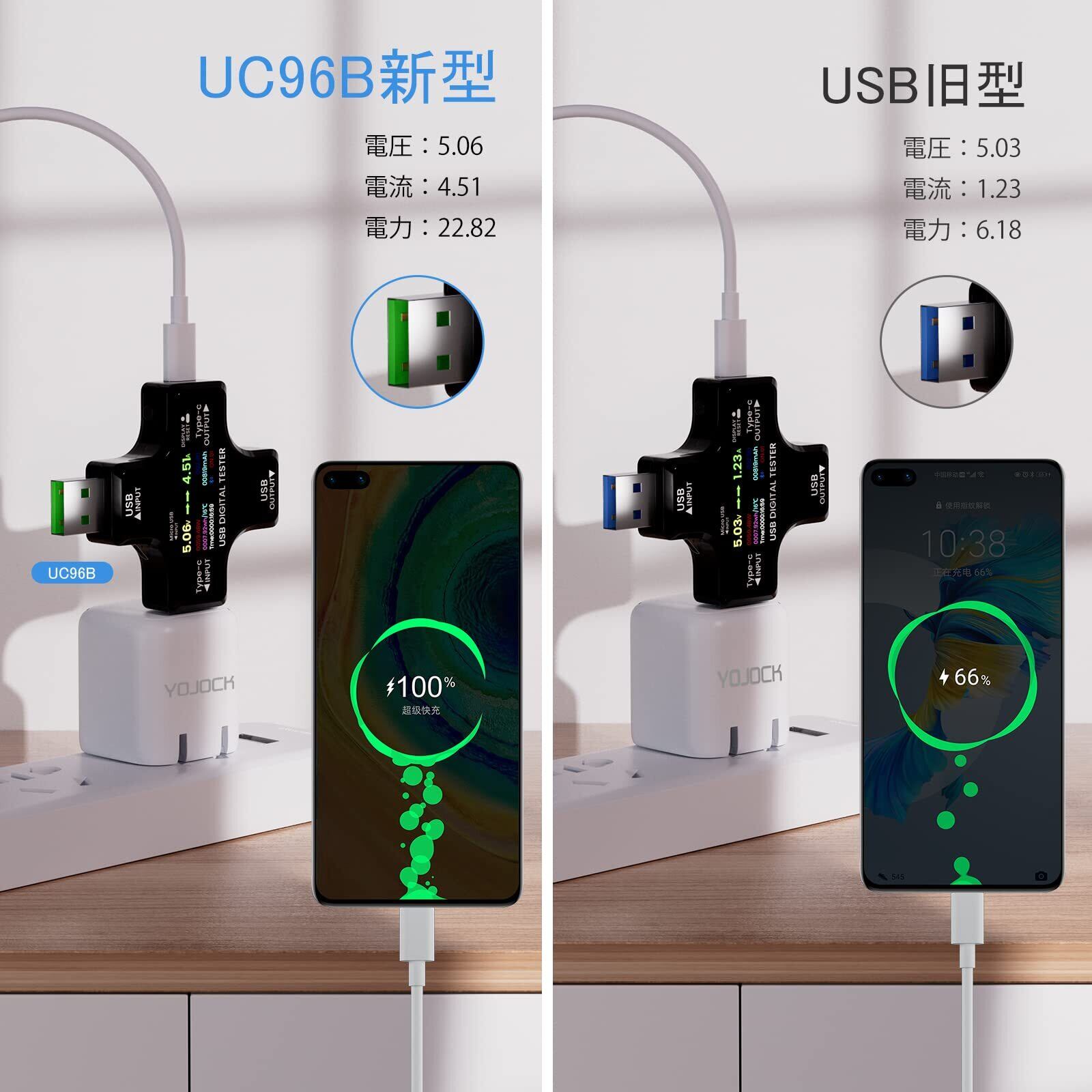 YOJOCK USB電圧電流チェッカー Type-C テスター アップグレードカラーディスプレイ 電流/電圧/抵抗/温度/通電時間など表示 Quick Charge 3.0/ QC2.0/ USB C/Android/iPhone/iPad対応 パワー/キャパシティ/時間/ワット/同時表示 クイックチャージャー充電スピードなど測量 3.60~32.0V 0~8A (UT003-JP)