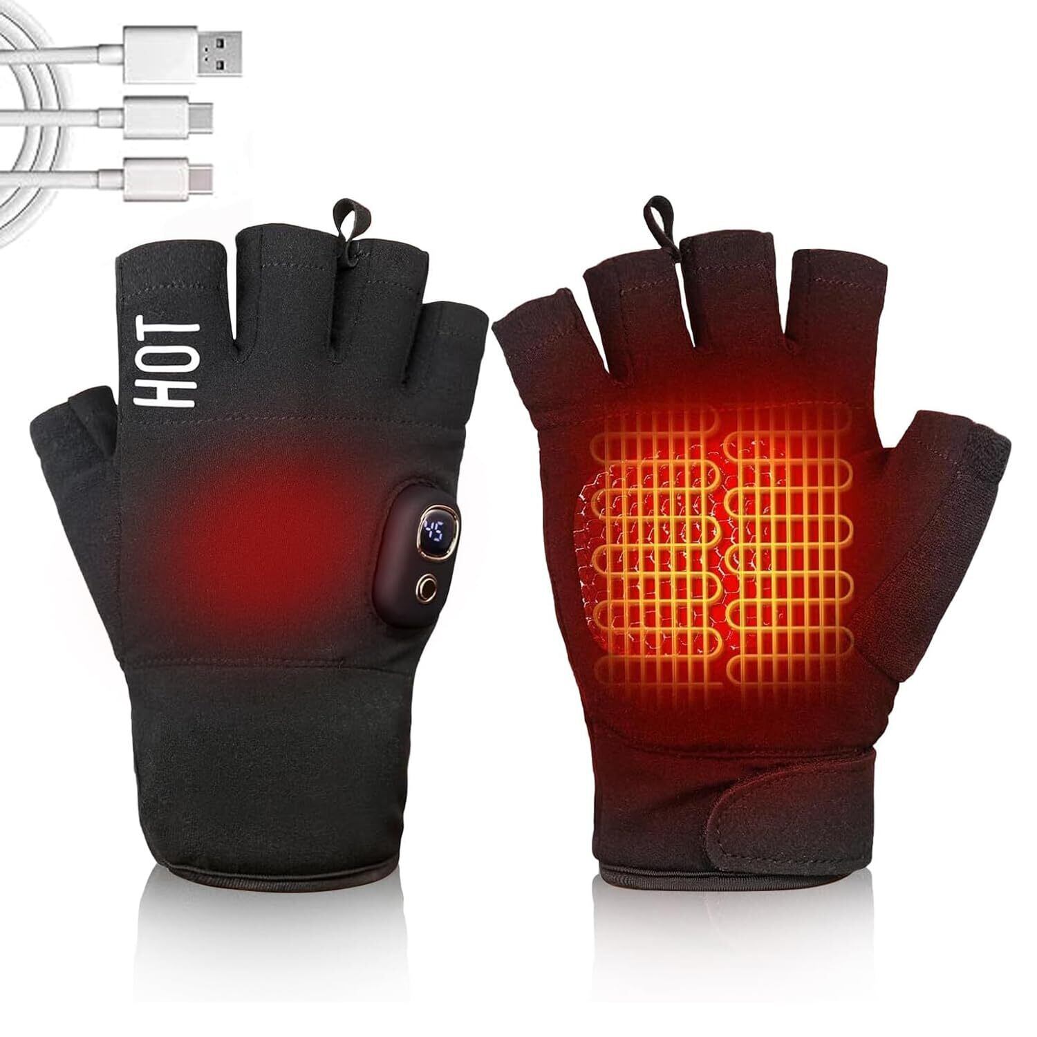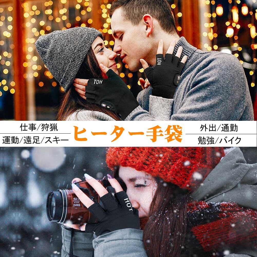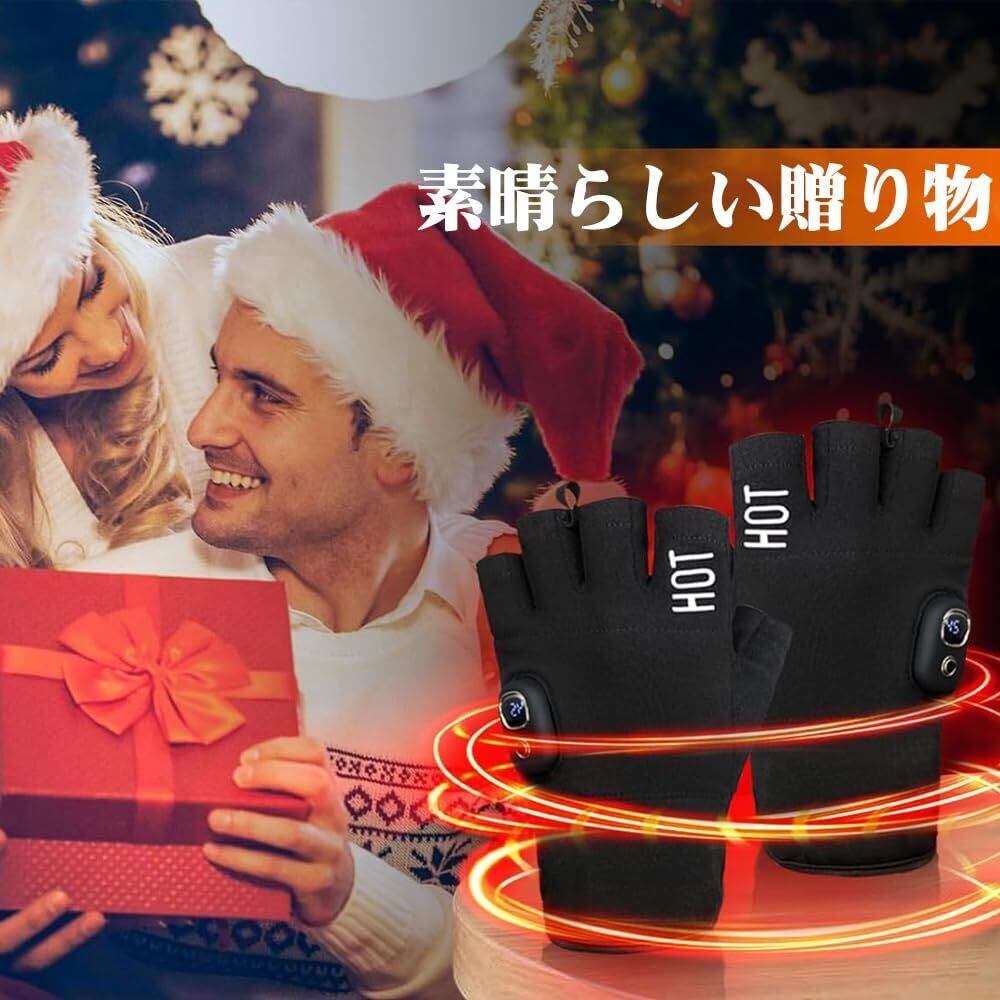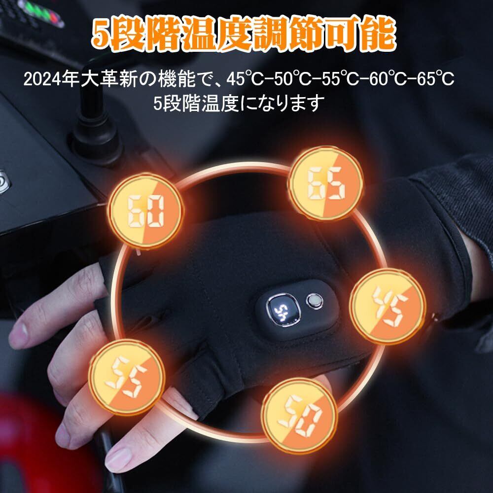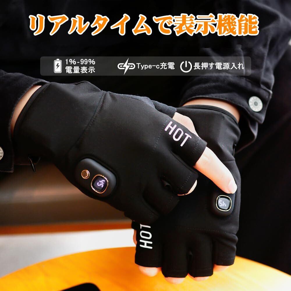 【2025年新登場】ヒーター手袋 電熱手袋 両面発熱 5段温度調整 3000mAh USB充電 ヒーター付き LEDデジタル画面表示 ハンドウォーマー ヒーターグローブ usb 充電式 指なし 手袋 パソコン 男女兼用 バイク 通勤 通学 作業用 冬用 ゲーミングてぽっか 人気 黒