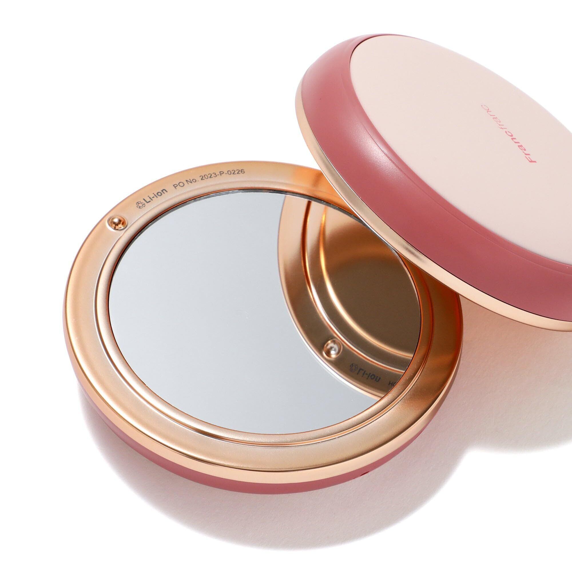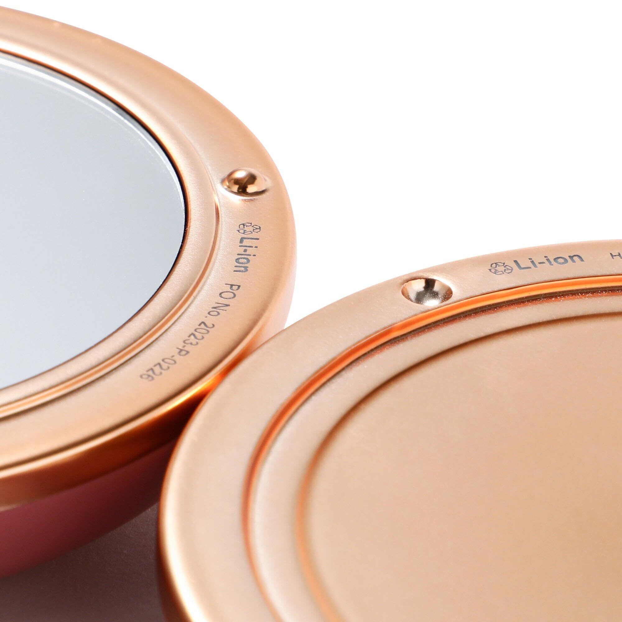ダブルクリックで電源を入れられるため、バッグなどでの誤作動を防止します。2つに分かれた片方にはミラーが付いており、お出かけの際の身だしなみチェックにも使用できます。持ち運びに便利な巾着タイプの収納バッグ付きです。