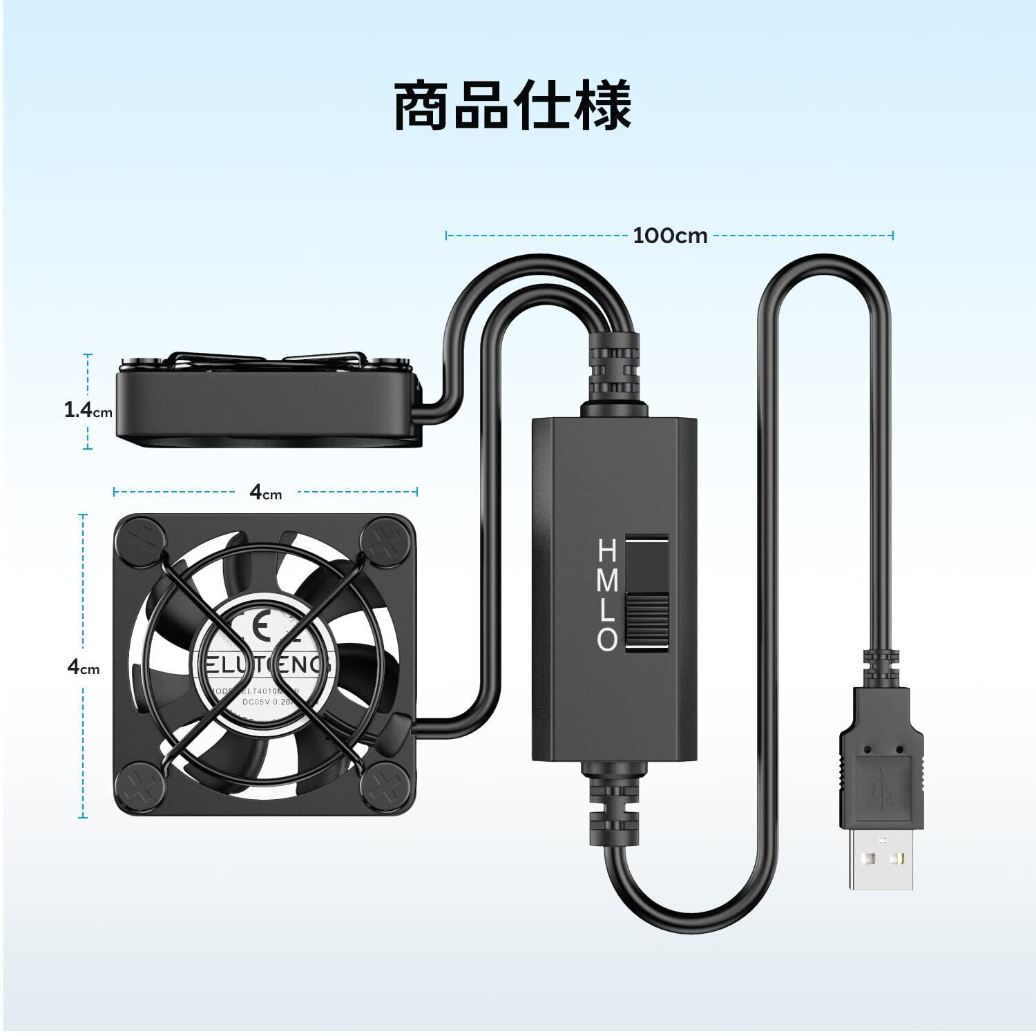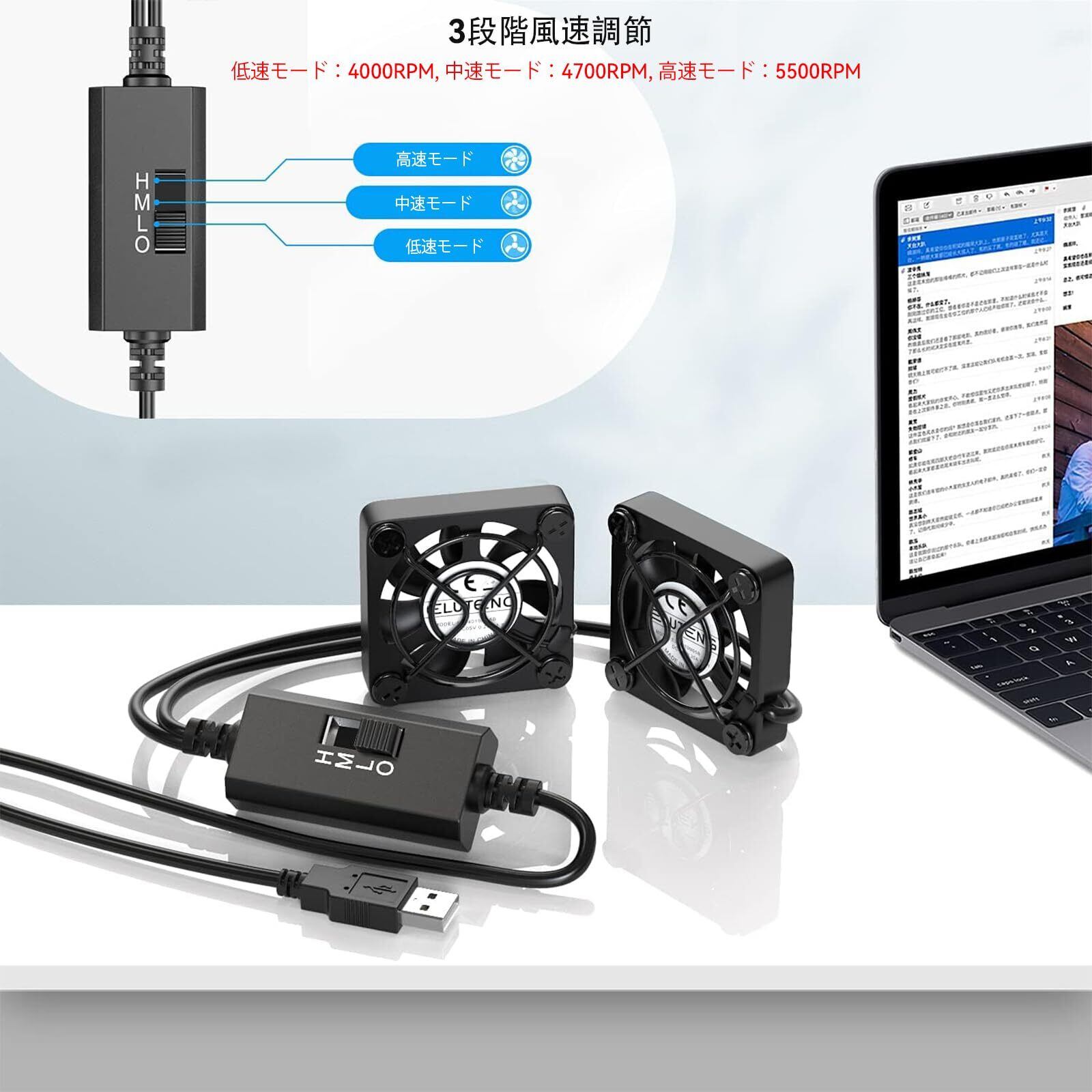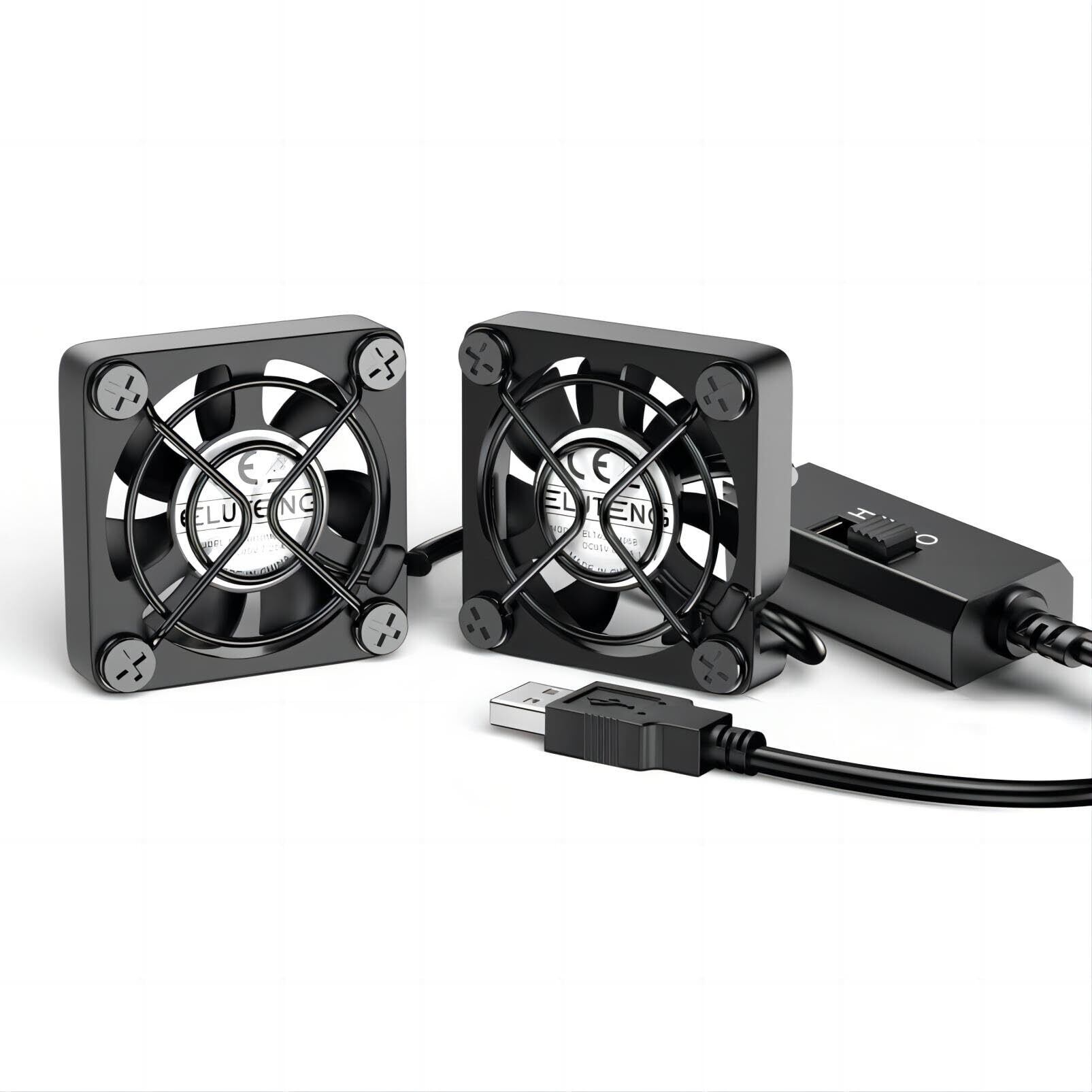 ELUTENG 小型ファン4cm 2連 USBファン 3段階風量調節 USB扇風機 2台1組 薄型 パソコン 電子デバイスの冷却 送風機 小型送風機 5V 長時間稼働可 Dual Usb fan 4cm