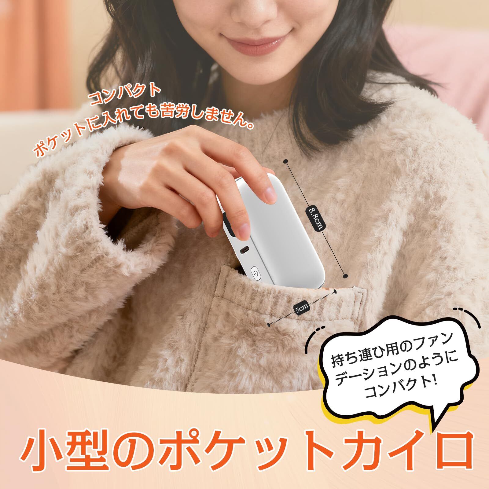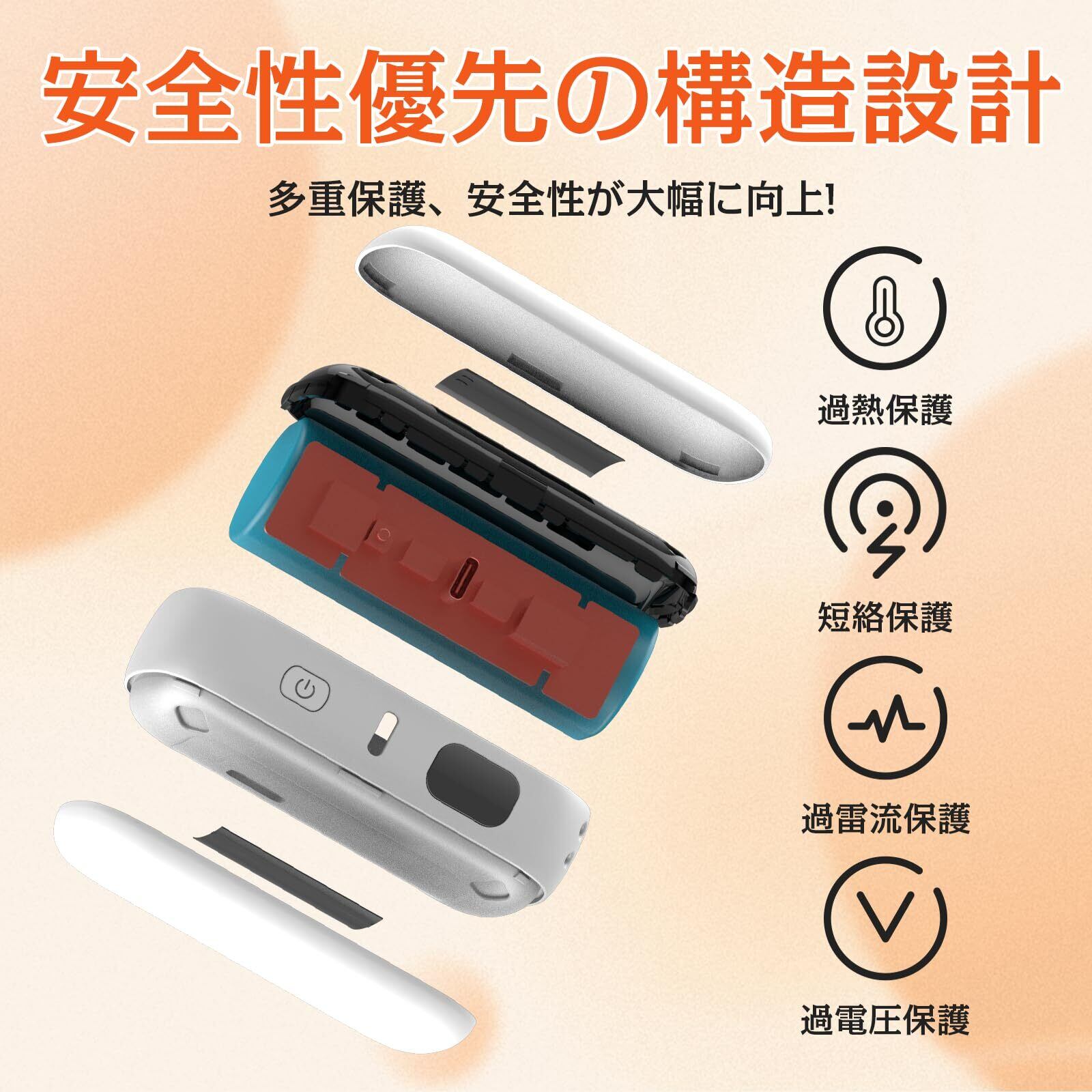 【智能インターロック & 携帯性】暖房機能作動時はUSB出力を自動停止する智能インターロック機能を搭載。コンパクトなボディにはストラップホールが付いており、歩行時にストラップを通すことで誤って外れるのを防げます。8.8*5*3.5cmとポケットやバッグに簡単に収納可能です、また、非常にコンパクトで持ち運びがとても便利です。