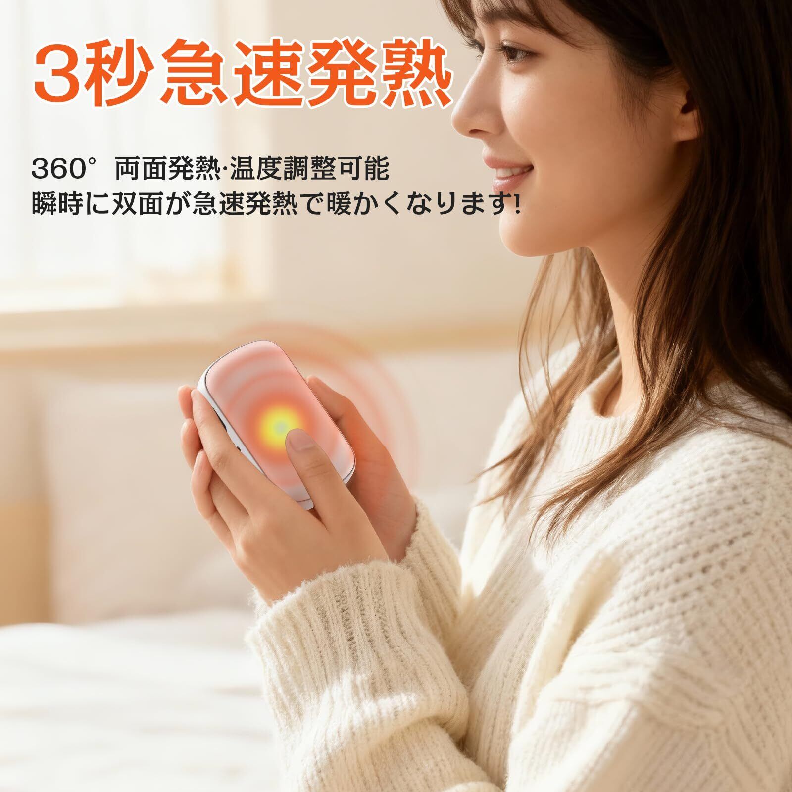 「充電式カイロ」は、冬の寒さをしっかりと防ぐために設計された便利なアイテムです!12000mAhの大容量バッテリーを搭載しており、モバイルバッテリーとしても使用可能。外出先でも安心して使用でき、スマートフォンなどの充電にも役立ちます。
