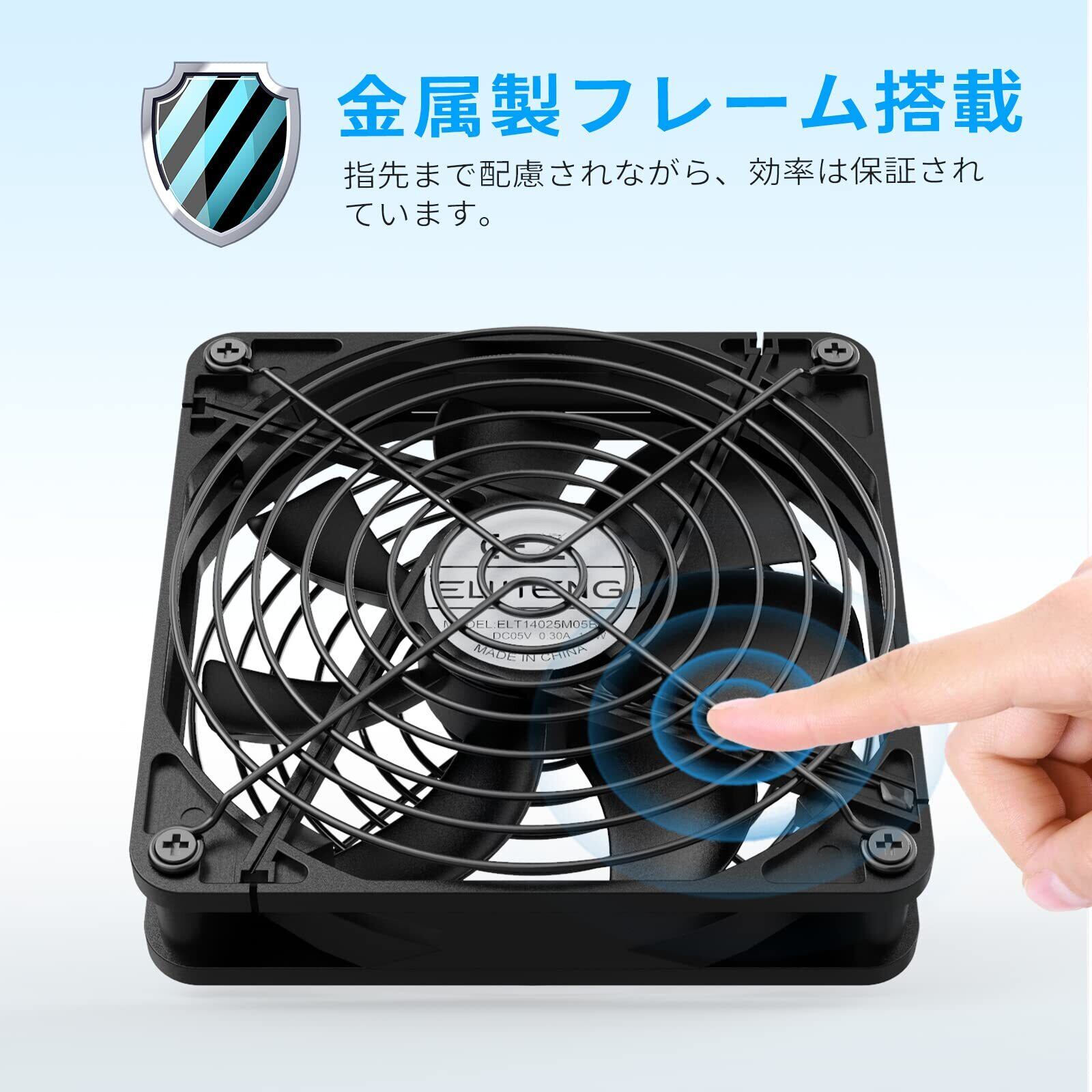 ELUTENG USBファンは耐久性に優れた材料で作られており、長寿命を誇ります。1500RPMの回転数で、高効率な冷却を実現し、長時間の使用にも耐えられる仕様ですので、安心してお使いいただけます。