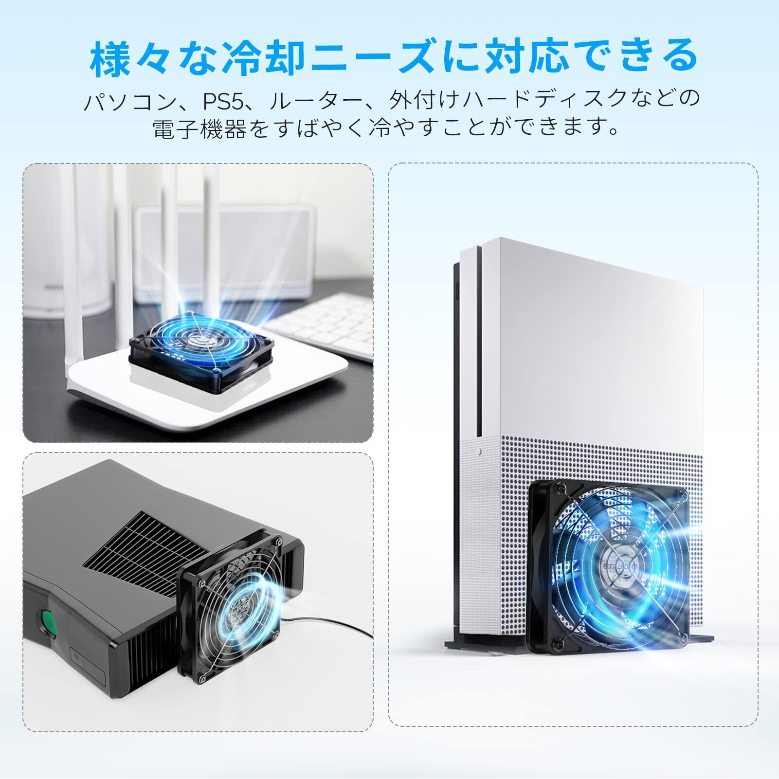 この冷却ファンは、パソコンやルーター、水槽、PS4ゲーム機など、様々な機器の冷却に最適です。また、車中泊や換気にも役立ち、夏の暑い日でも快適に過ごせるサポートをします。1台あるだけで、あなたの生活がぐっと快適になります。