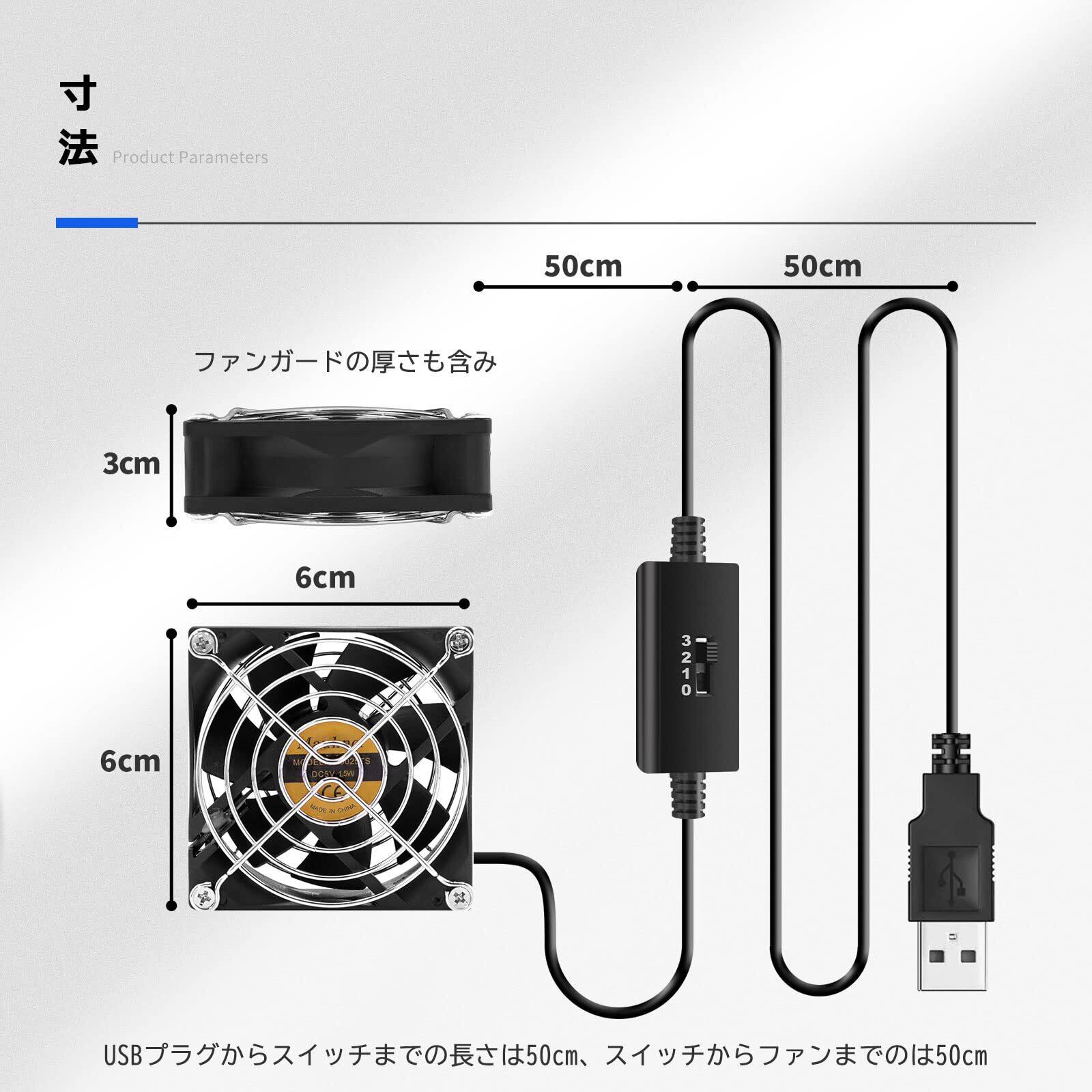 ファン 小型 60mm USB ファン 3段階風量調整 5V 連続稼働可 ミニファン ルーター / PS4など冷却用ファン 6cm