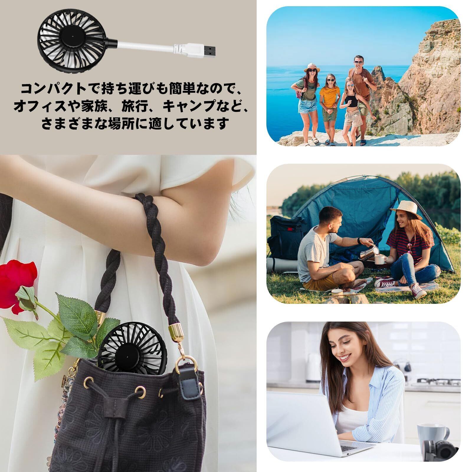 【USB給電式携帯扇風機】USB電源式なので、パソコン・ノートPC・モバイルバッテリー・USBアダプターなど、あらゆるUSBポートに接続するだけで手軽に使用可能です。オフィス・家庭・外出先・旅行中など、場所を選ばずに快適な風をお届けします。