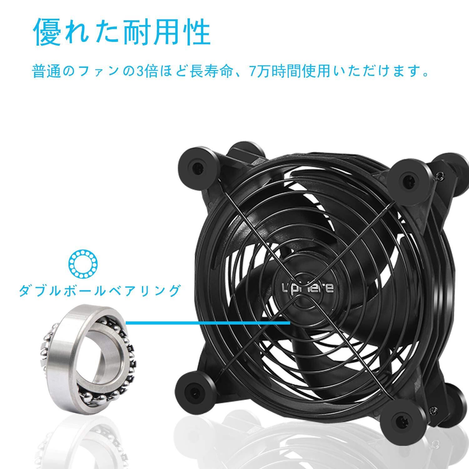 【耐久性】デュアルボールベアリングを採用、回転の安定性を確保するほか、別仕様のベアリングと比べてもっと長くご使用頂けます。 約7000時間の理論寿命あり、使用するにつれて、騒音の増加にならず、24時間連続稼働可能。