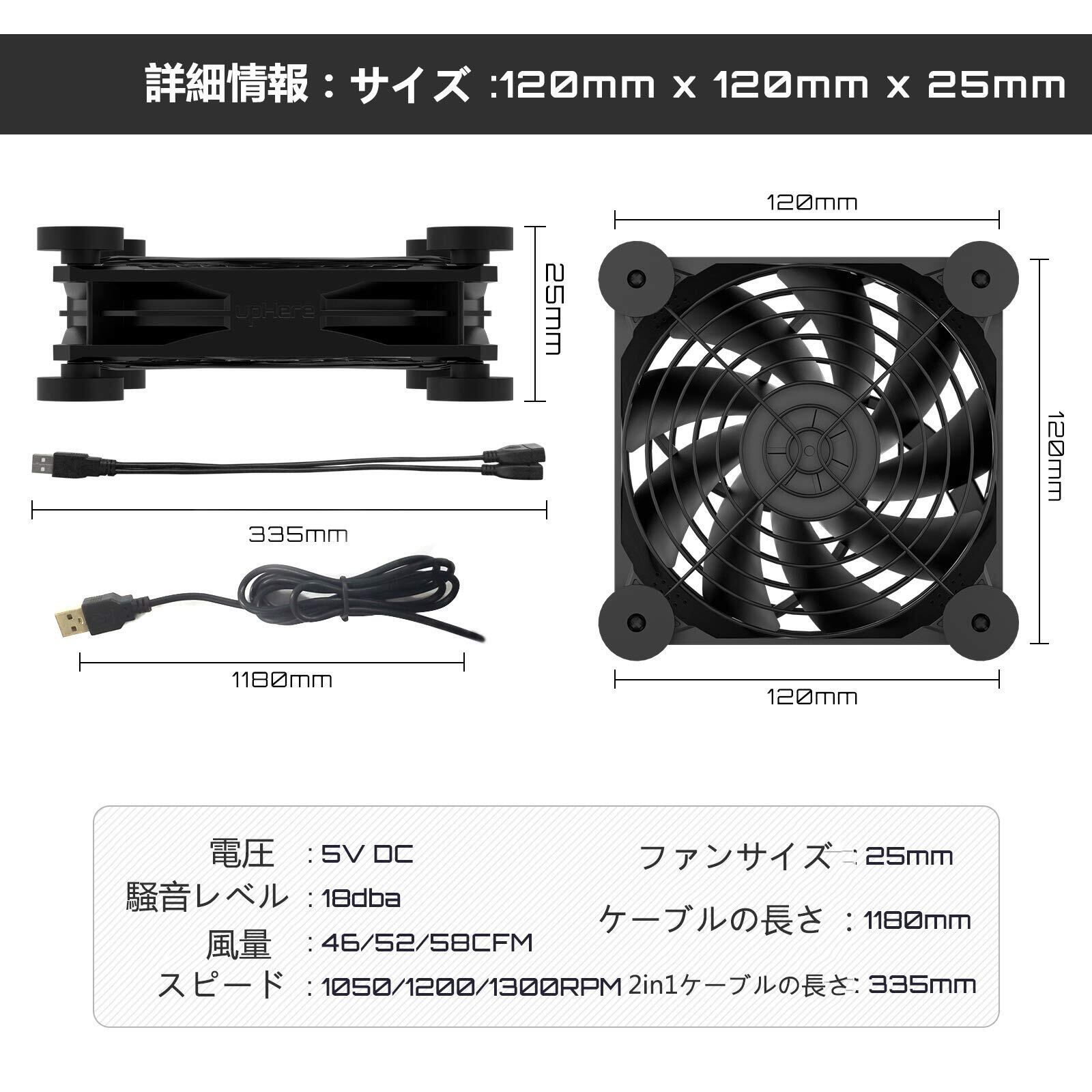 novonest upHere 120mm USB扇風機 USB冷却ファン ミニ送風機 静音タイプ 3段階調節 (2本1セット)【U1204-2】