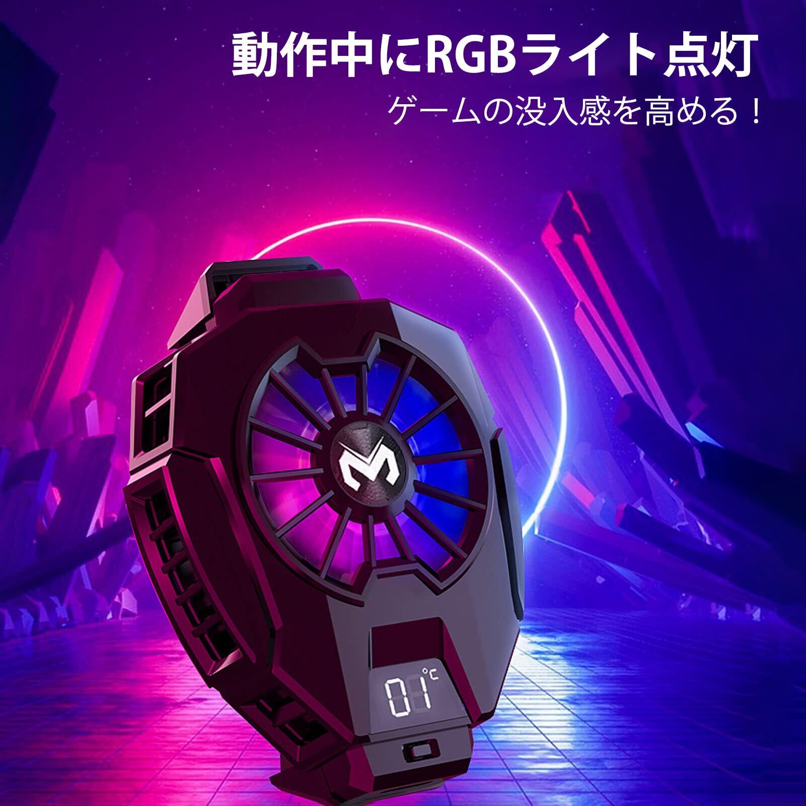 【LED温度表示・RGBライト効果】従来品に比べて、本冷却ファンはLED温度表示が付き、スマホの温度が一目瞭然になります!動作中にRGBライトを点灯しているので、ゲームの没入感を高めます。
