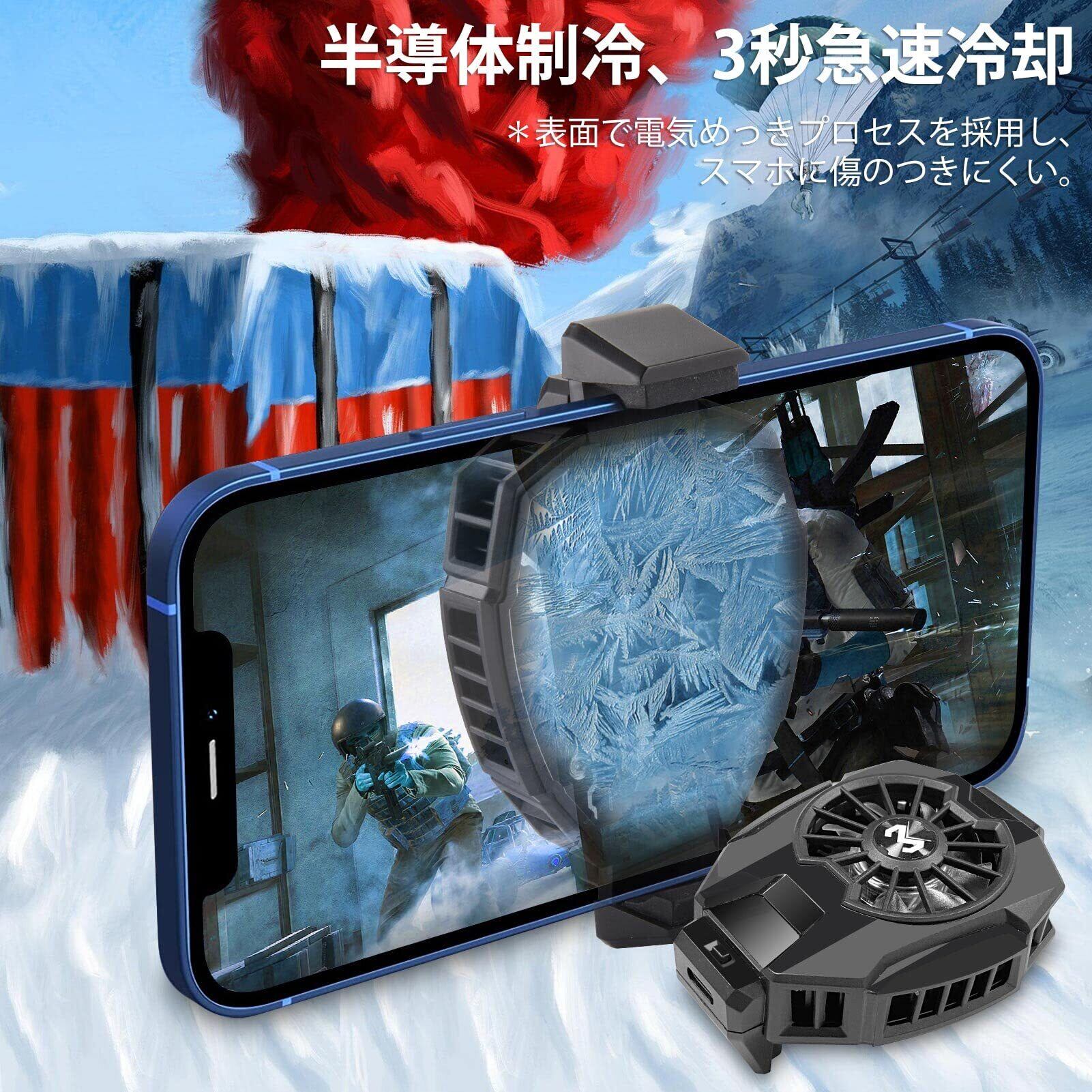 【半導体冷却・スマホに熱暴走対策】ペルチェ素子を用いた素早い冷却と1分間に7000回転の大風量ファンを組み合わせることで、スマホを急速に冷却します。発熱による急に画面が暗くなることや連続異常の問題を防止することができます。
