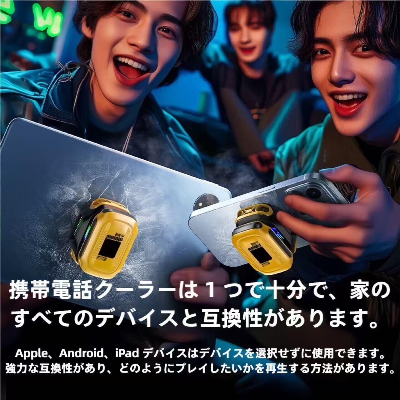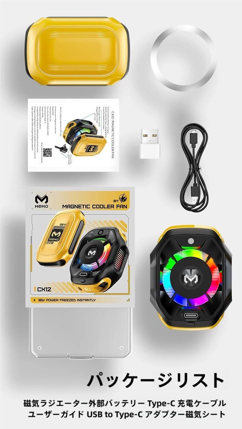 全ゲーム対応 & 安心パッケージ 全機種・全ゲーム制覇:/ PUBG/原神など高負荷3Dゲームも60fps安定動作。 同梱物で即戦化: 冷却本体 / 外付けバッテリー / Type-Cケーブル 全デバイス用磁気シート(Android/iPad対応明記) 日本語説明書