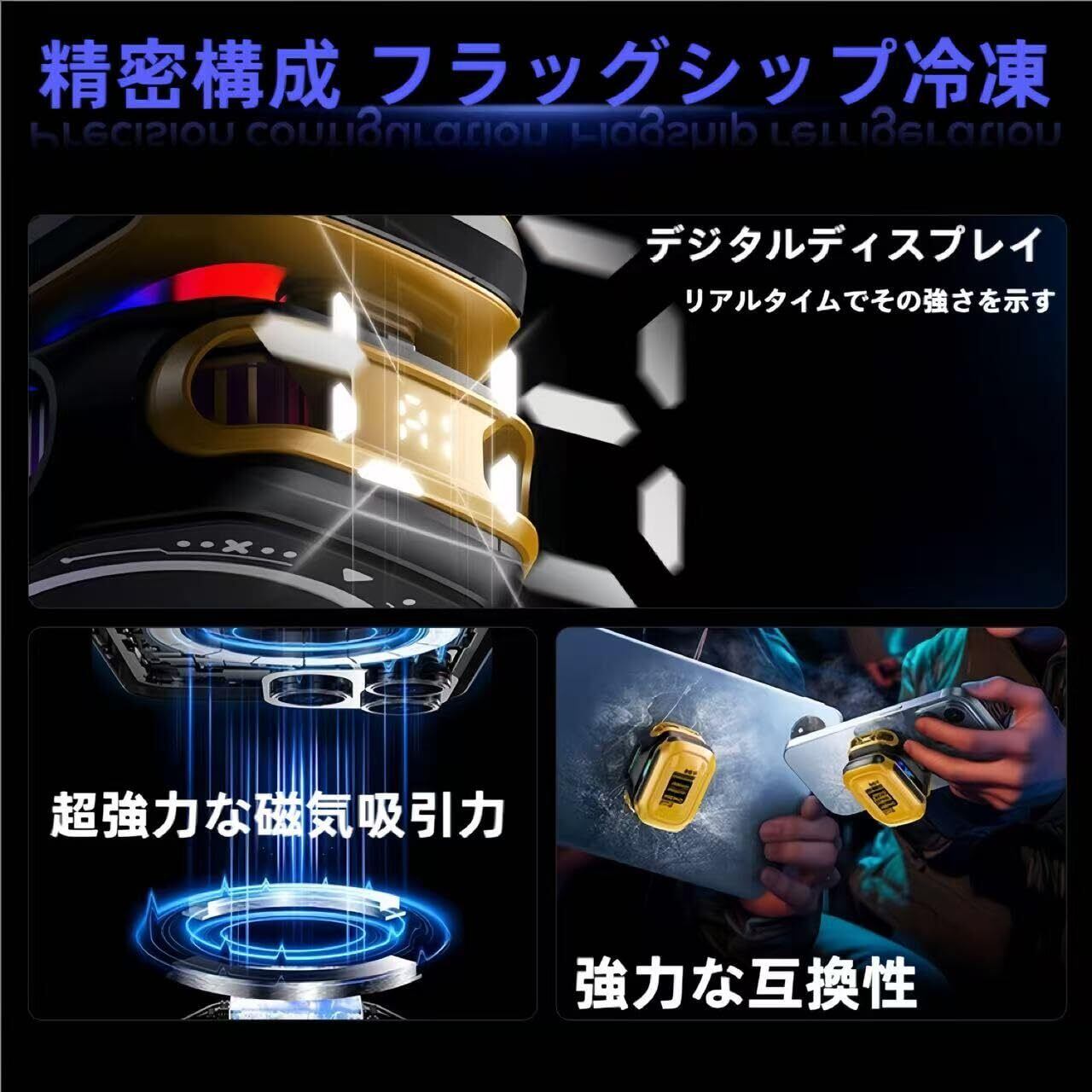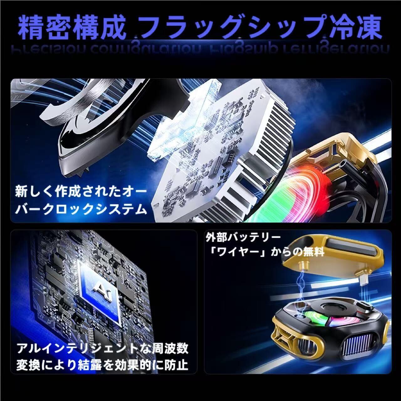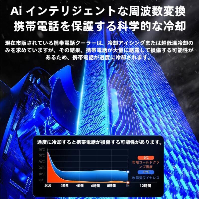 ✨プロ級冷却性能とAiスマート制御 →❄️ 10W ハイパワー「瞬時結氷」:TEC半導体が熱源を直撃!高負荷ゲーム中のスマホも10秒で結氷レベルの低温に。 AIインテリジェント変速:→ アイコン スマホの温度上昇を感知し自動パワーブースト。温度が高いほど冷却効率UP! 2段階冷却モード:❄️ 強冷モード / ️ Aiモード をワンタッチで切替。 結露防止+科学冷却:️ 内部回路を保護しながら最大冷却効率を実現。 デジタル温度表示:️ リアルタイム冷却効果を可視化!