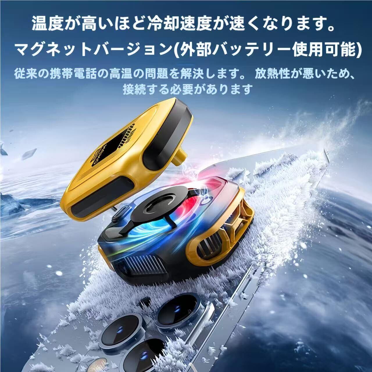 「スマホ冷却ファン」は、最新技術を駆使して熱を効率的に管理する冷却デバイスです!自宅でのゲームや動画視聴、さらには外出時にも最適な本製品は、2000mAhの大容量バッテリーを搭載し、急速冷却を実現しています。