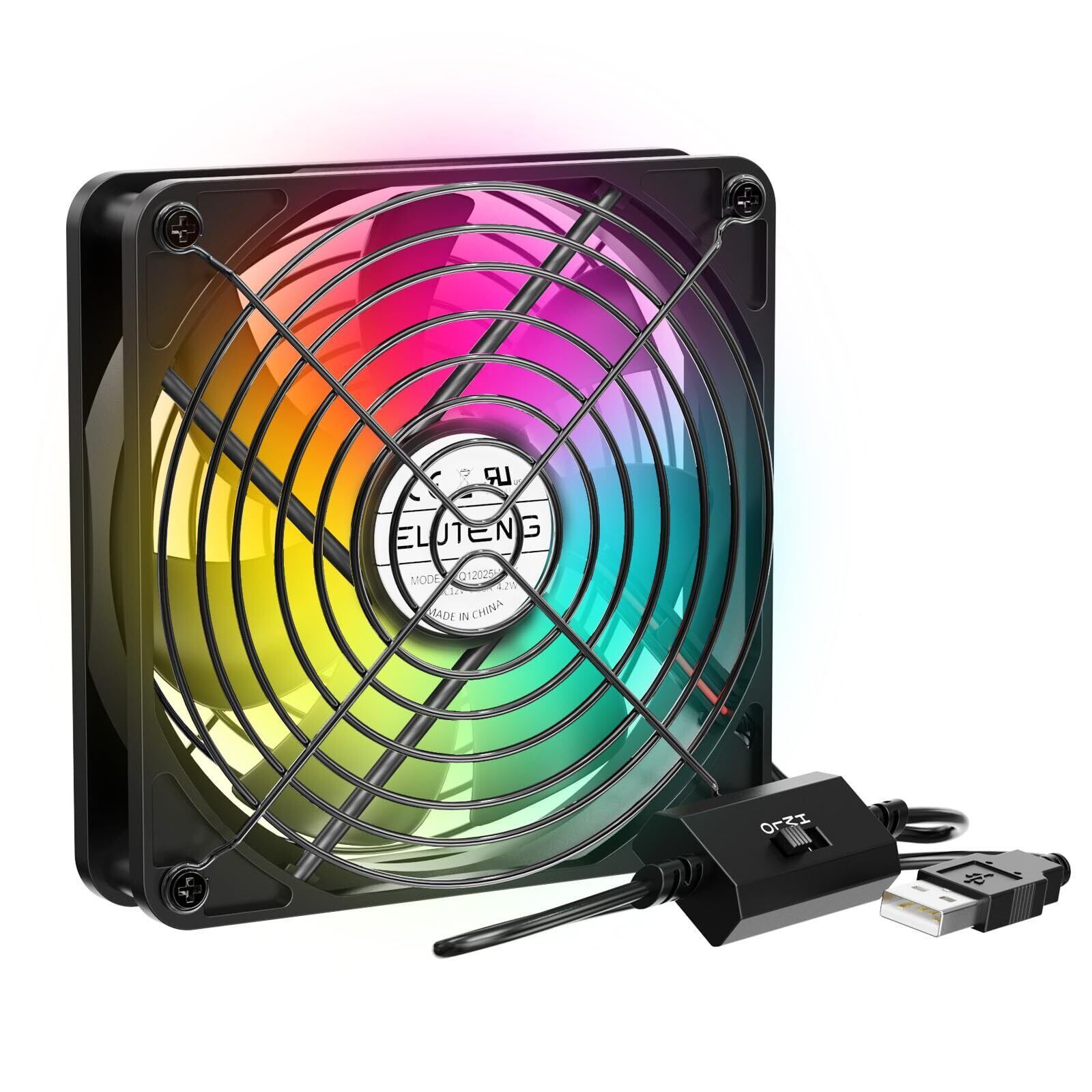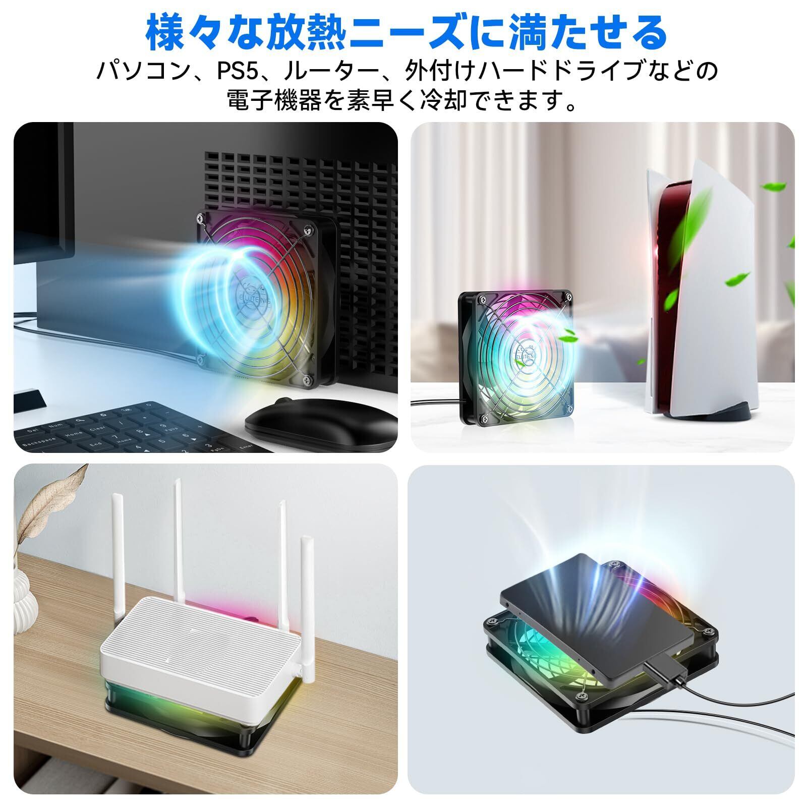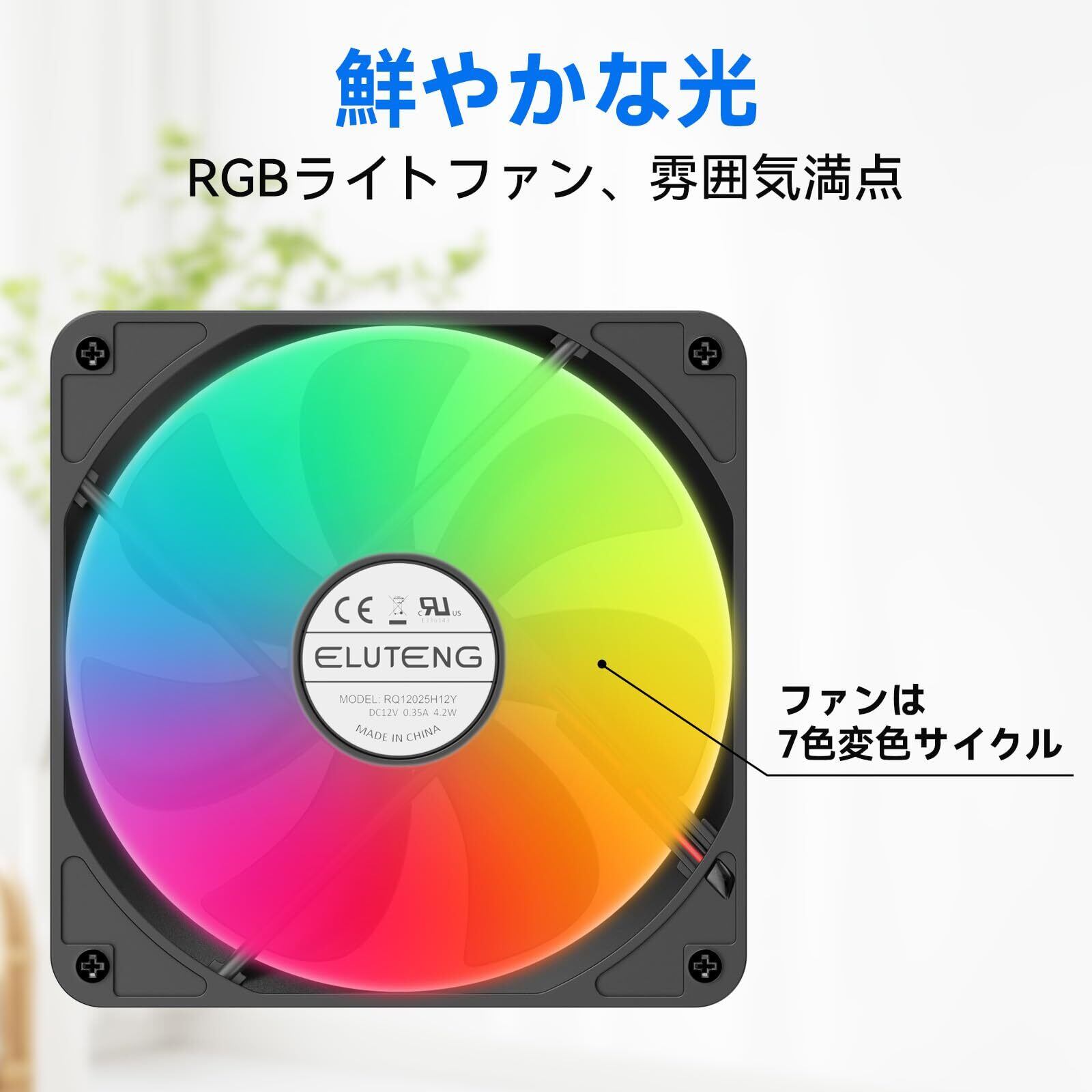 ELUTENG USBファン 12cm RGB 7色変化 冷却ファン 強力1500RPM 3段階風速調節 静音 薄型 7枚羽根 長寿命 卓上 PC ゲーム機 ルーターなど対応