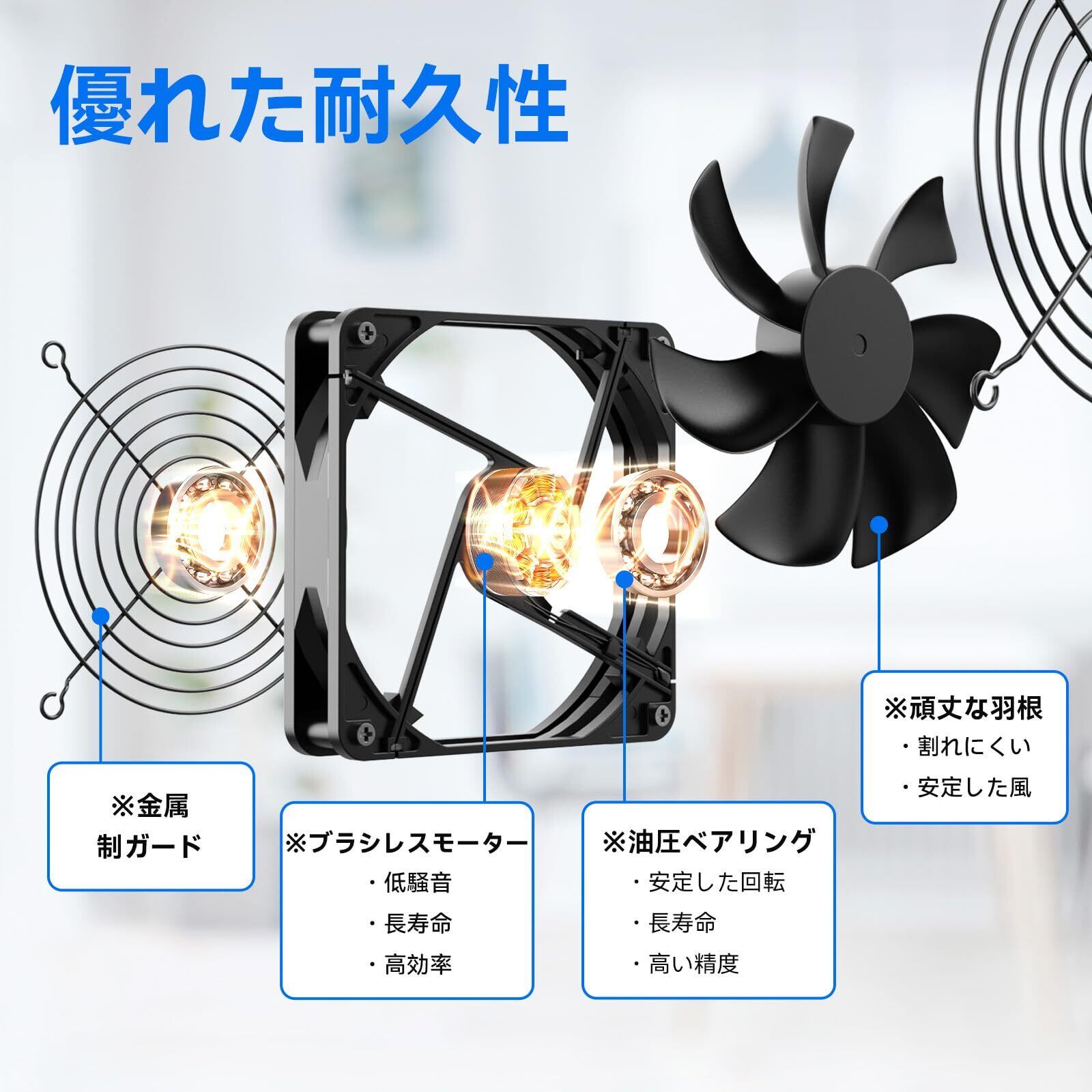 【高品質&長時間稼働】pcファンは高品質のモーターを採用し、寿命は通常ファンの2倍以上で、長時間の連続動作が可能です。金属のファンガードが装着されており、作動中にうっかり指を入れてケガをしてしまう心配も不要です。