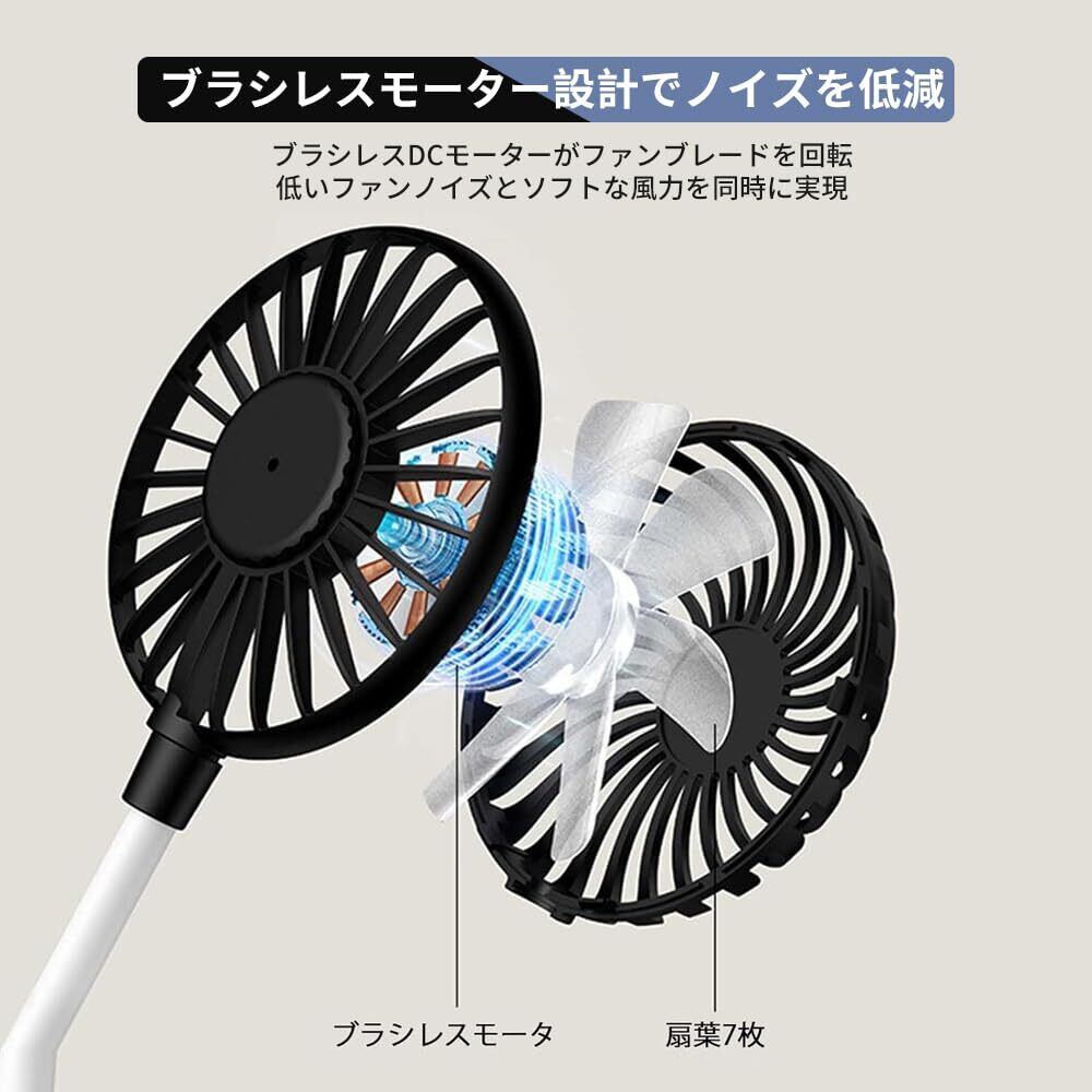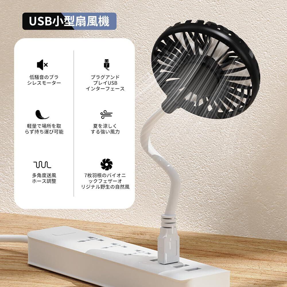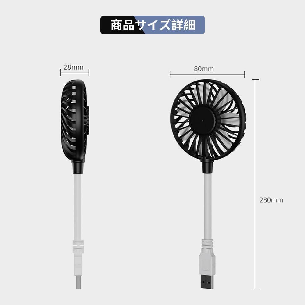 USB 扇風機 小型 ミニ携帯送風機 車用扇風機 静音 ポータブル 軽量 7枚羽根設計 ポータブル コンパクト USB給電対応 角度調整可能 家庭 オフィス デスクトップ キャンプなどに適用(黒い)
