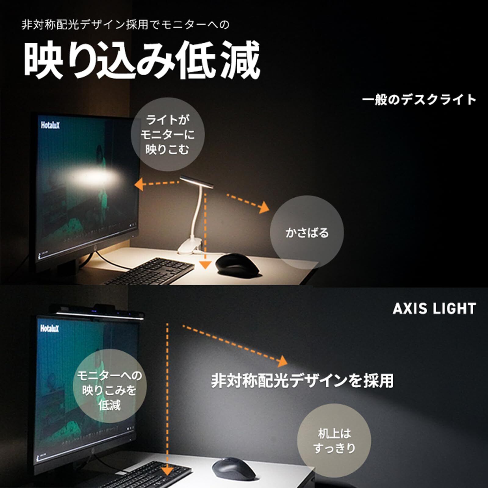 ホタルクス(HotaluX)PCモニターライト 47.5cm幅 【日本製】フェイスライト搭載 WEBカメラ設置台 湾曲モニター対応 USB給電 昼光色/昼白色/電球色 HSDL101CK-UD5 AXIS LIGHT バーライト ~リモートワークやオンライン学習、WEB配信にも最適~