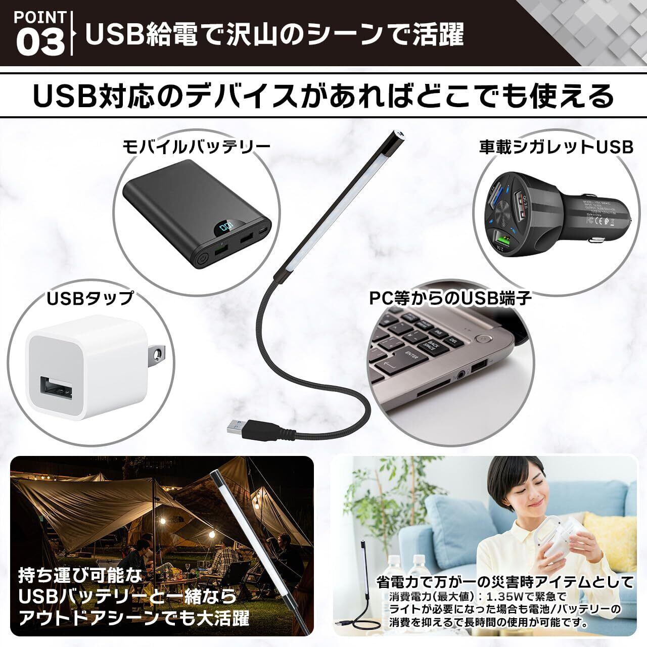 【USB給電で便利】