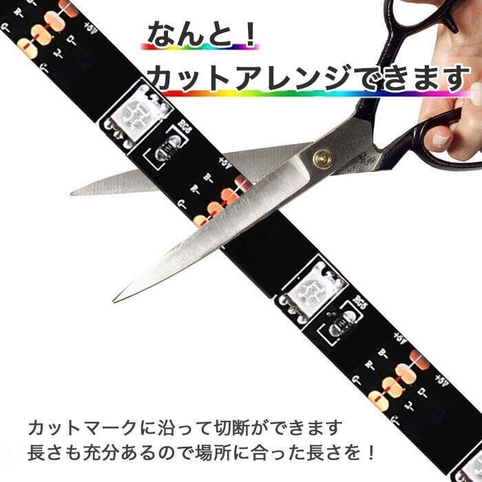 長さ 5m の USB テープライト ハサミ で 自由自在 に 調節
