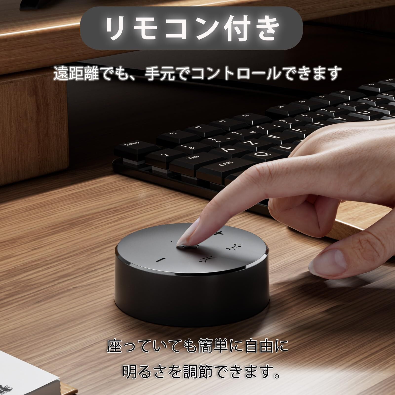 リモコンによる操作で、デスクから離れることなく明るさや色温度を即座に変更可能。この便利なリモコンは、シンプルなボタン配置で、誰でも簡単に使用できるようデザインされています。