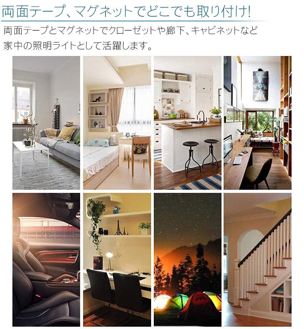 両面テープとマグネットでクローゼットや廊下、キャビネットなど家中の照明ライトとして活躍します。