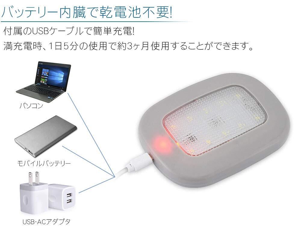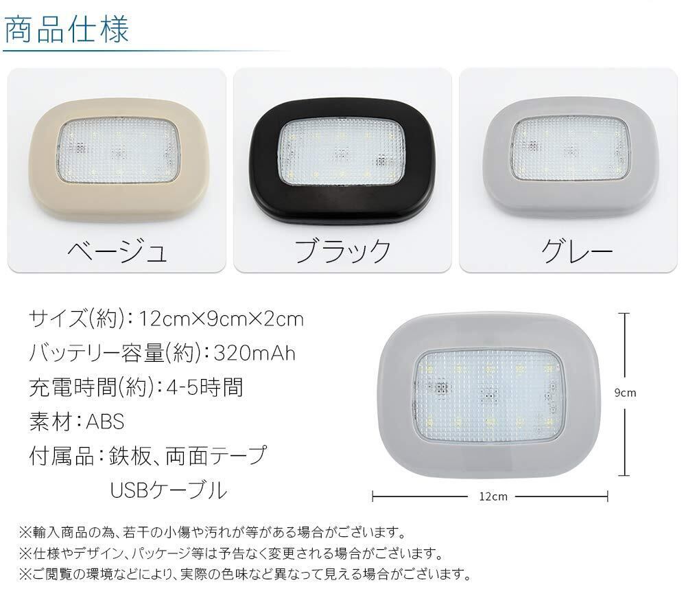 室内灯 LEDライト 読書灯 照明 多用途 USB充電 小型 ポータブル 磁石 マグネット 車 室内照明 階段 廊下 (グレー) PR-LUMINOUS-GY