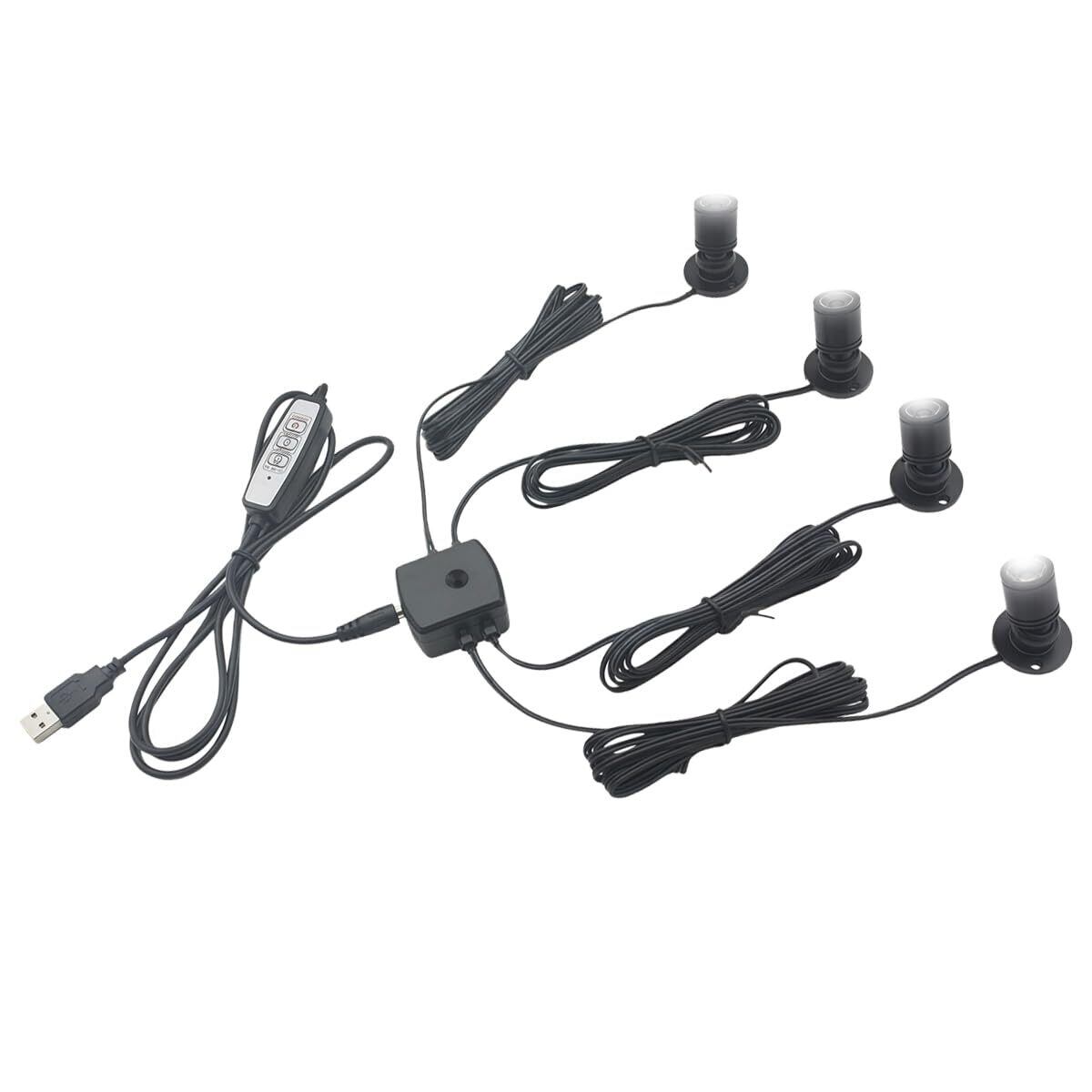 USB スポットライト LED 4W ミニサイズ 間接照明 ディスプレイライト 角度調節可能 三段階調光 タイマー 記憶機能 昼光色6500k A型 4個入り