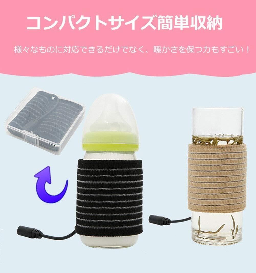 ドリンクウォーマー バンドウォーマー USB接続するだけで保温 ペットボトル 缶コーヒーに 巻タイプ 暖かい 巻き付けるだけ 保温ヒーター (ブラック)
