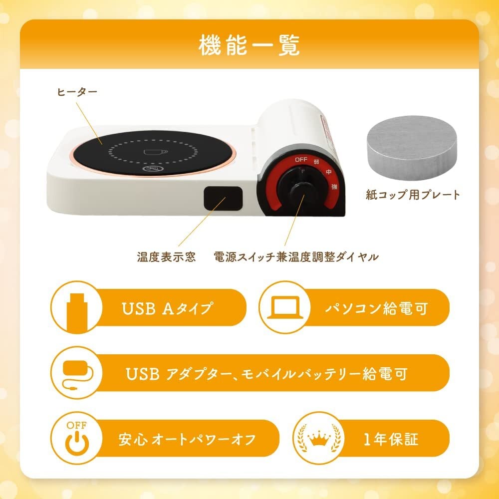USB対応 カップウォーマー 紙コップ 缶 哺乳瓶 マグカップ 保温 卓上 デスク オフィス コースター 3段階温度調整 国内メーカー ホワイト