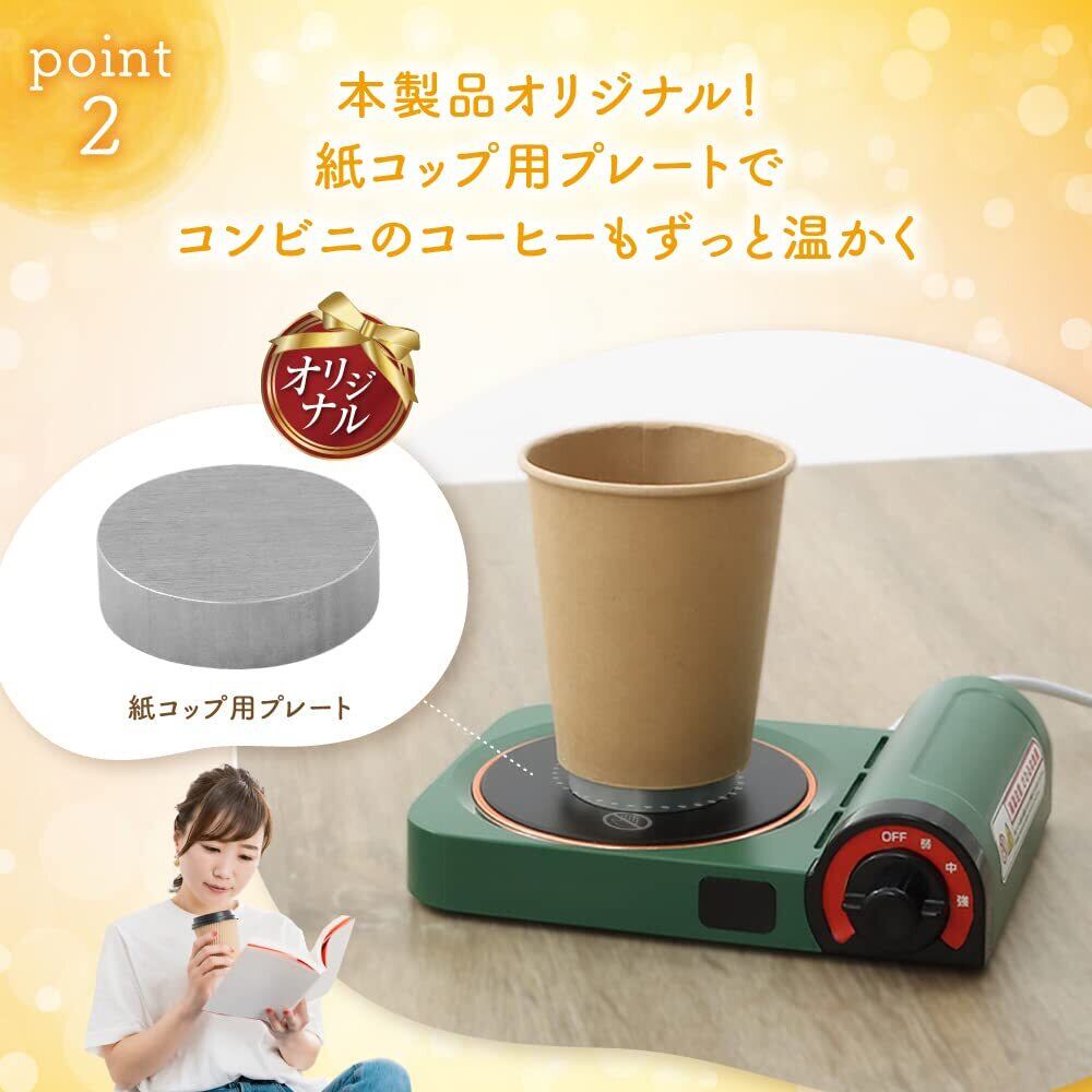 【紙コップにも対応】:付属の紙コップ用プレートを使用すればコンビニのコーヒーもずっと温かいまま。紙コップの他にマグカップ、紙パック、哺乳瓶、缶(アルミ、スチール)にも対応。(対応する紙コップ:底面直径4.8cm以上、上げ底1cm以下、紙の材質)