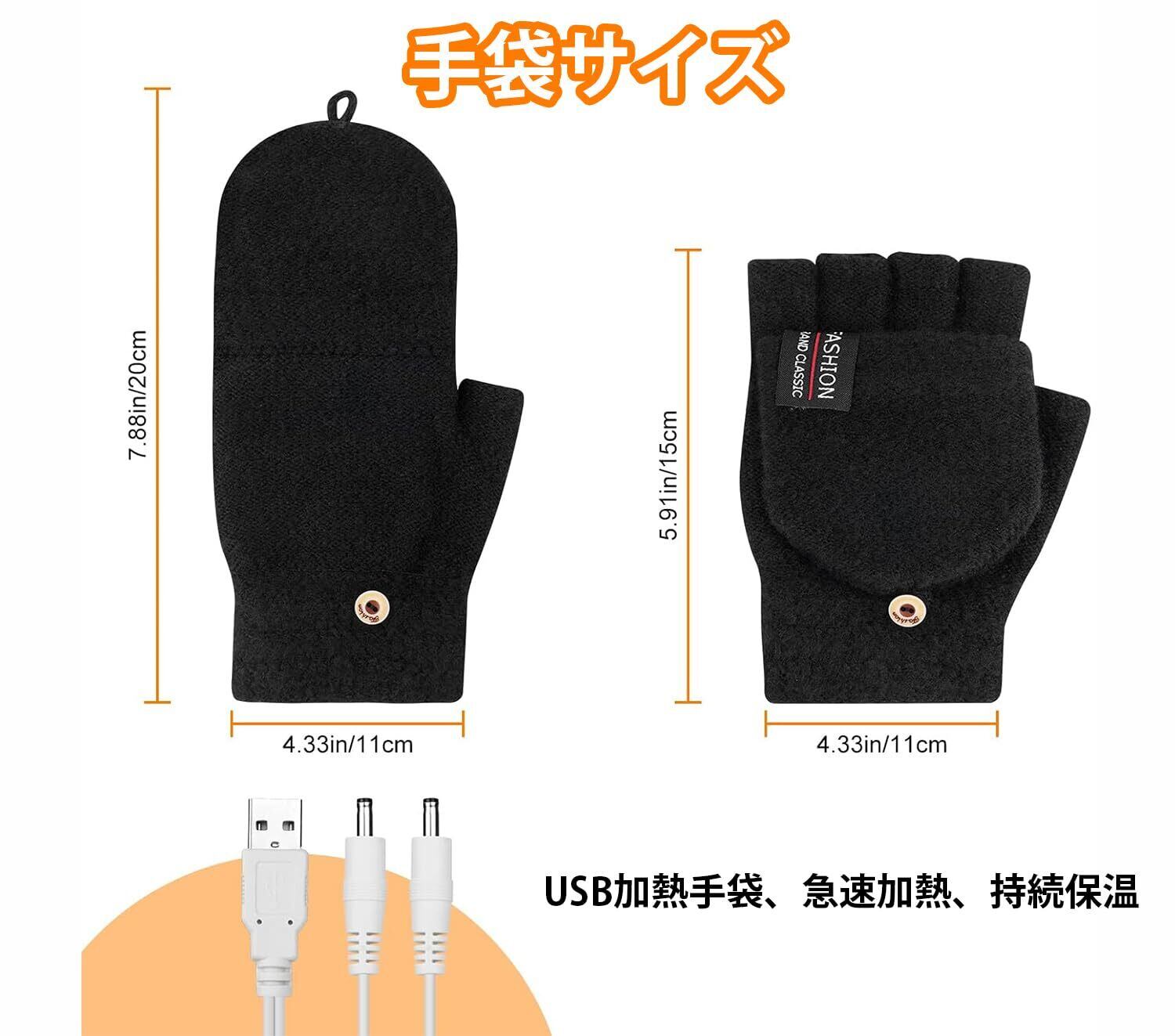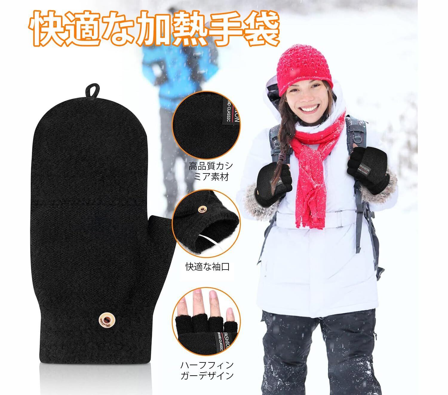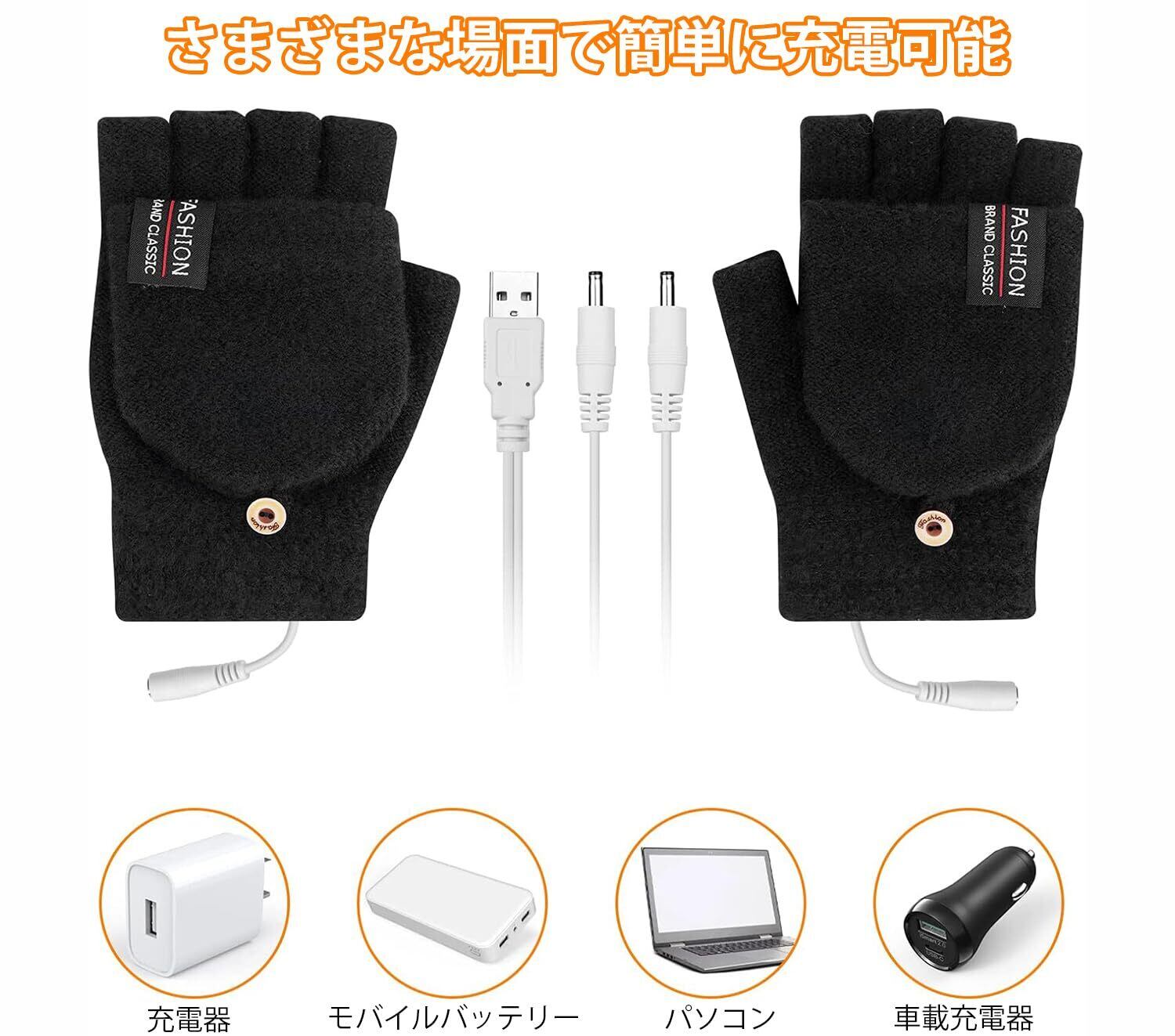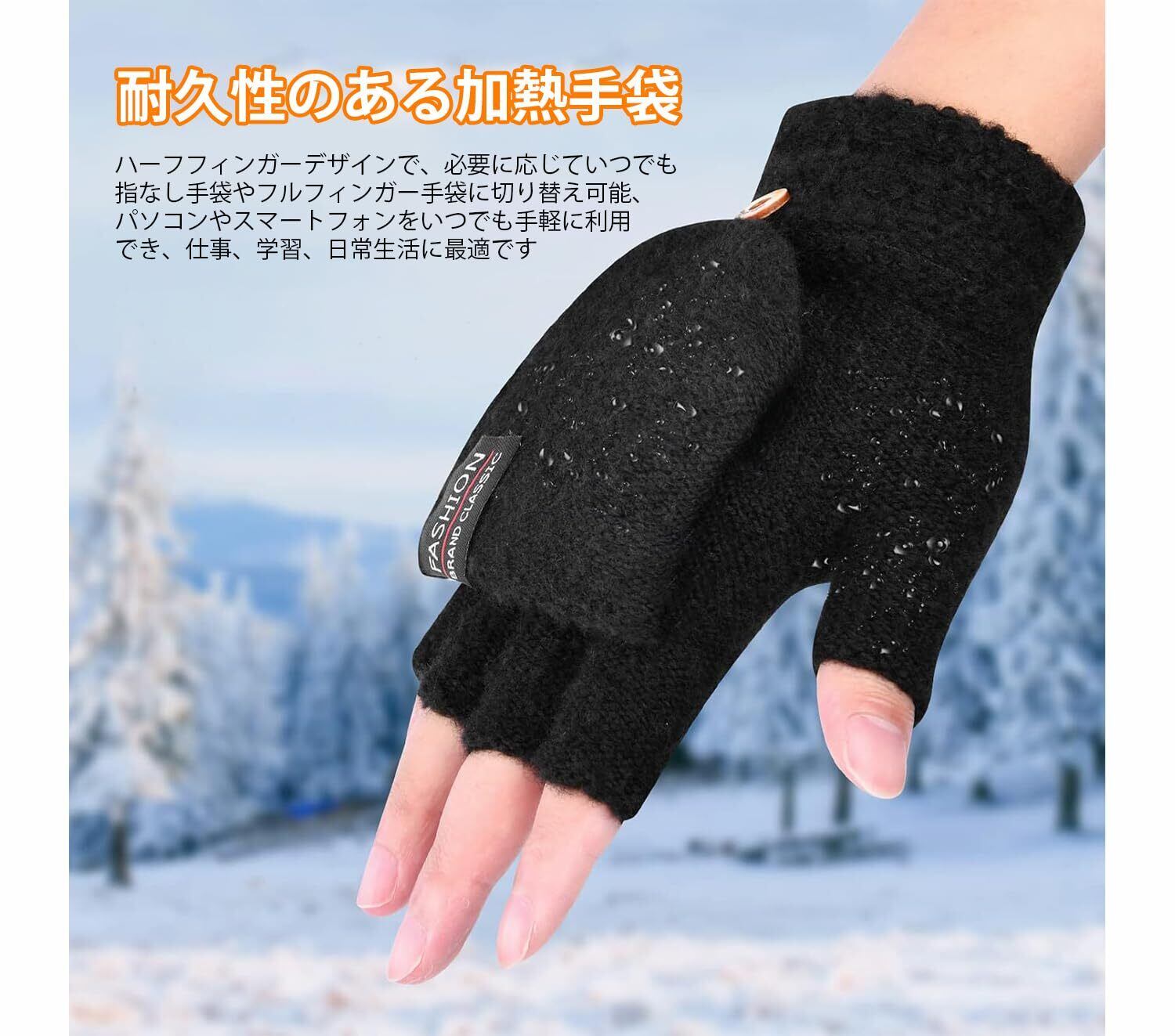 [ZAFEE] 電熱グローブ ヒーター手袋 【両面発熱 指切り USB充電式手袋 】 柔らかい 男女兼用 おしゃれ編み手を温めるグッズ 保温 防寒 通勤 通学