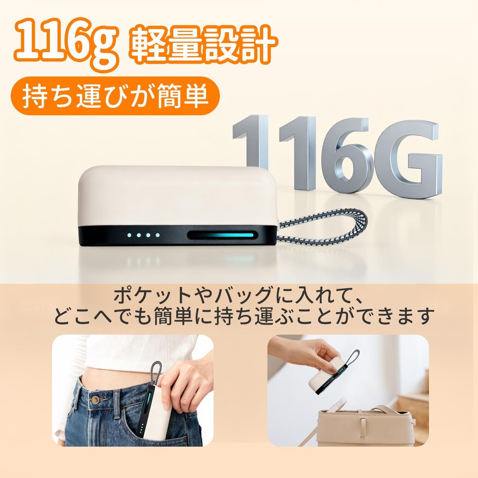 【ポケットにすっと収まる、超軽量コンパクト設計】 どこへでも気軽にお持ちいただけます。ポケットや小さなポーチの中も占領しない、その携帯性の良さが魅力。洗練されたクリーム色のデザインと相まって、毎日持ち歩きたくなる上質な温もりを提供します。