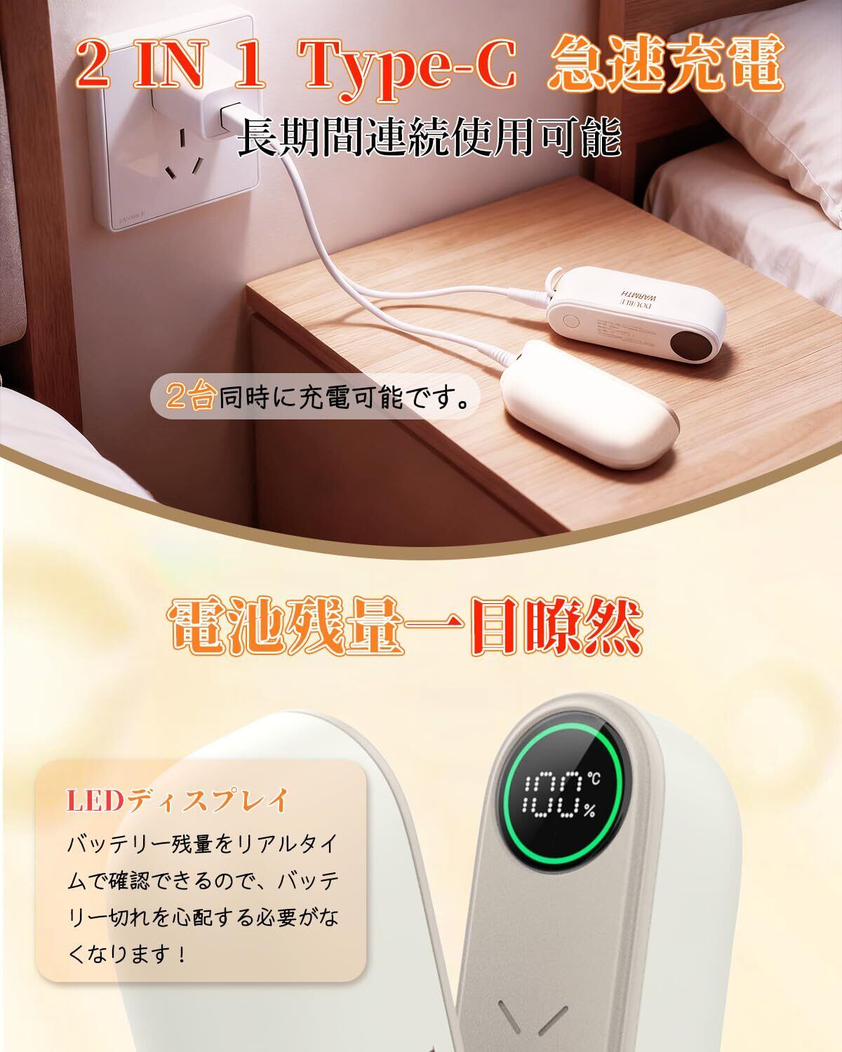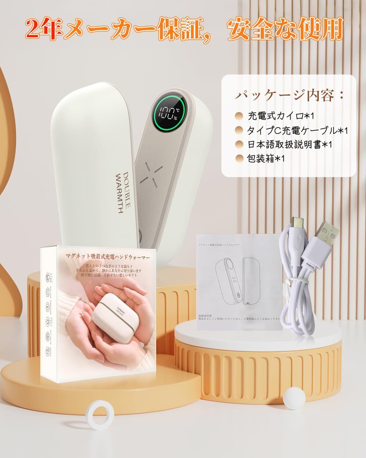 ✨【2 年間の安心付き!贈り物に最適充電式カイロ】 充電式カイロ、自分自身や家族、取引先の皆様にプレゼントするにぴったりです。※製品をご使用中、ご不明点や不具合がございましたら、お手数ですがメールにてまでご連絡ください。迅速に返品・返金の対応をさせていただきます。お客様のご満足をお約束いたします。(パッケージ内容:充電式カイロ本体 ×1、USB-C 2in1 ケーブル ×1、取扱説明書 ×1。)
