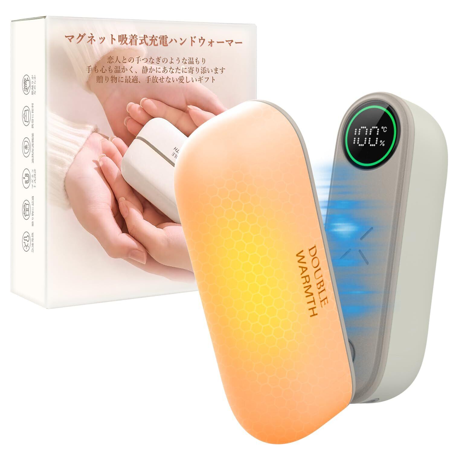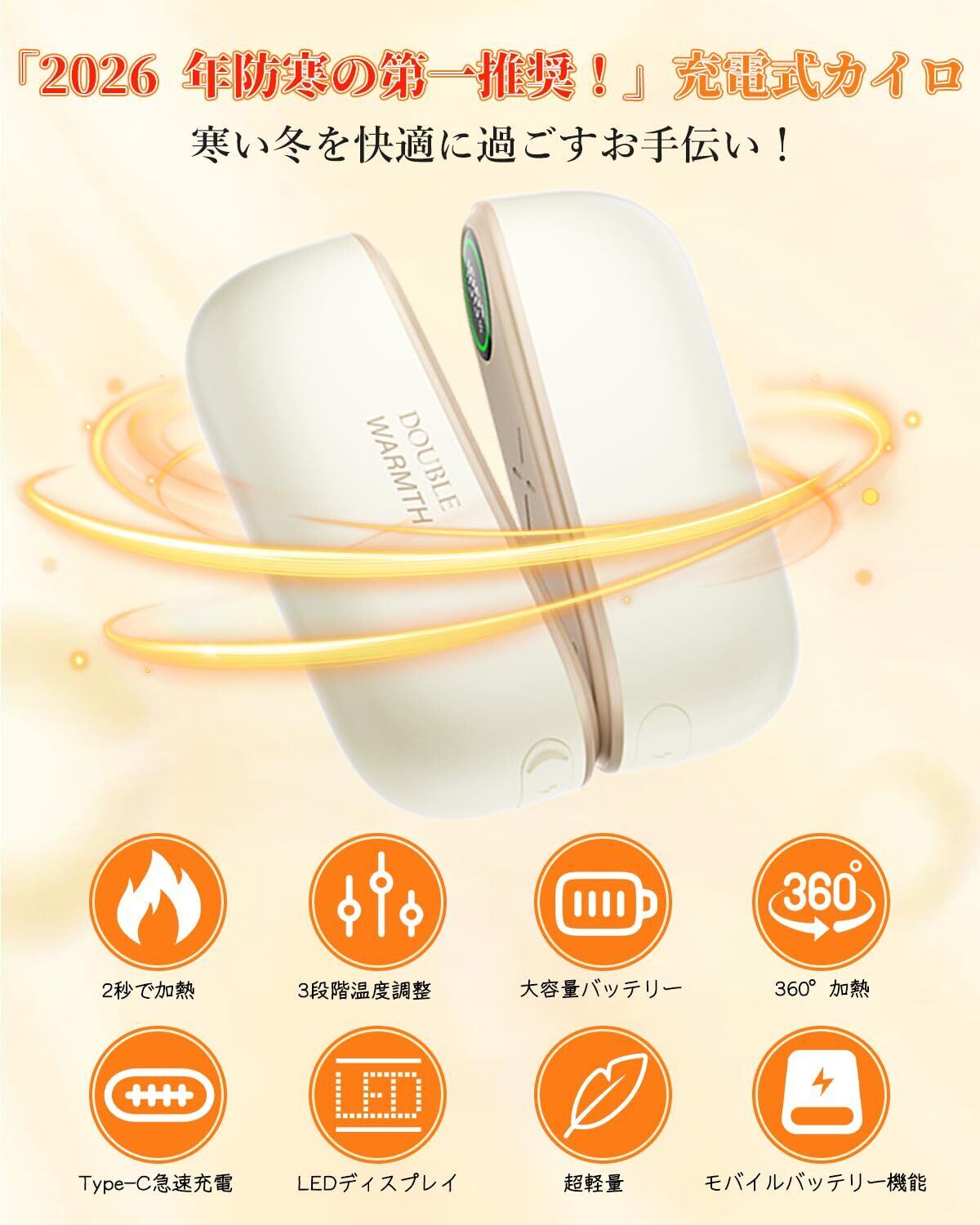 【人気限定】充電式カイロ 360°全方位発熱 2秒急速発熱 3階段温度調節(45-60℃) モバイルバッテリー機能 大容量 10000mAh LEDデジタル 22時間連続発熱可能 【超軽量小型 マグネット 分離式設計】 Type-C急速充電 操作簡単 持ち運び 繰り返し利用 冬/通勤/通学/旅行/デスクワークなどに適用 クリスマスプレゼン 日本語説明書(ホワイト)