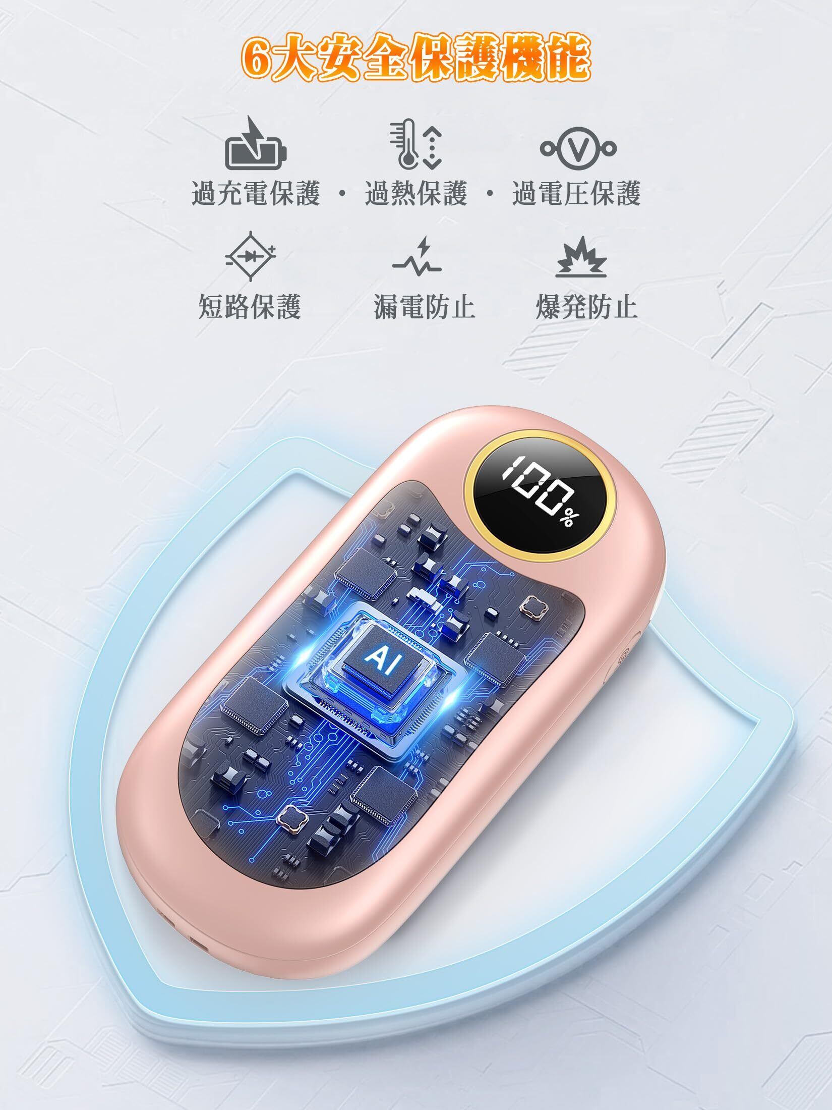 【多重保護システム搭載】ホッカイロ 充電式には安全性の高い外殻素材を使用しており、ショートあるいは衝撃保護を実現します。セルにも過熱監視、過電圧保護、過電流保護、過充電保護、過放電保護など安全機能が備わっていて、安心してご利用いただけます。ストラップ付きで手首にかけて使えるため、うっかり落としてしまう心配もありません。これにより、カイロの寿命短縮や爆発のリスクを予防します。高齢者や子供も安心してご利用いただけます。※高齢者は熱さに鈍感になっている場合があるため、低温火傷に被害される恐れがありますので、低温モードで使用することをお勧めします。