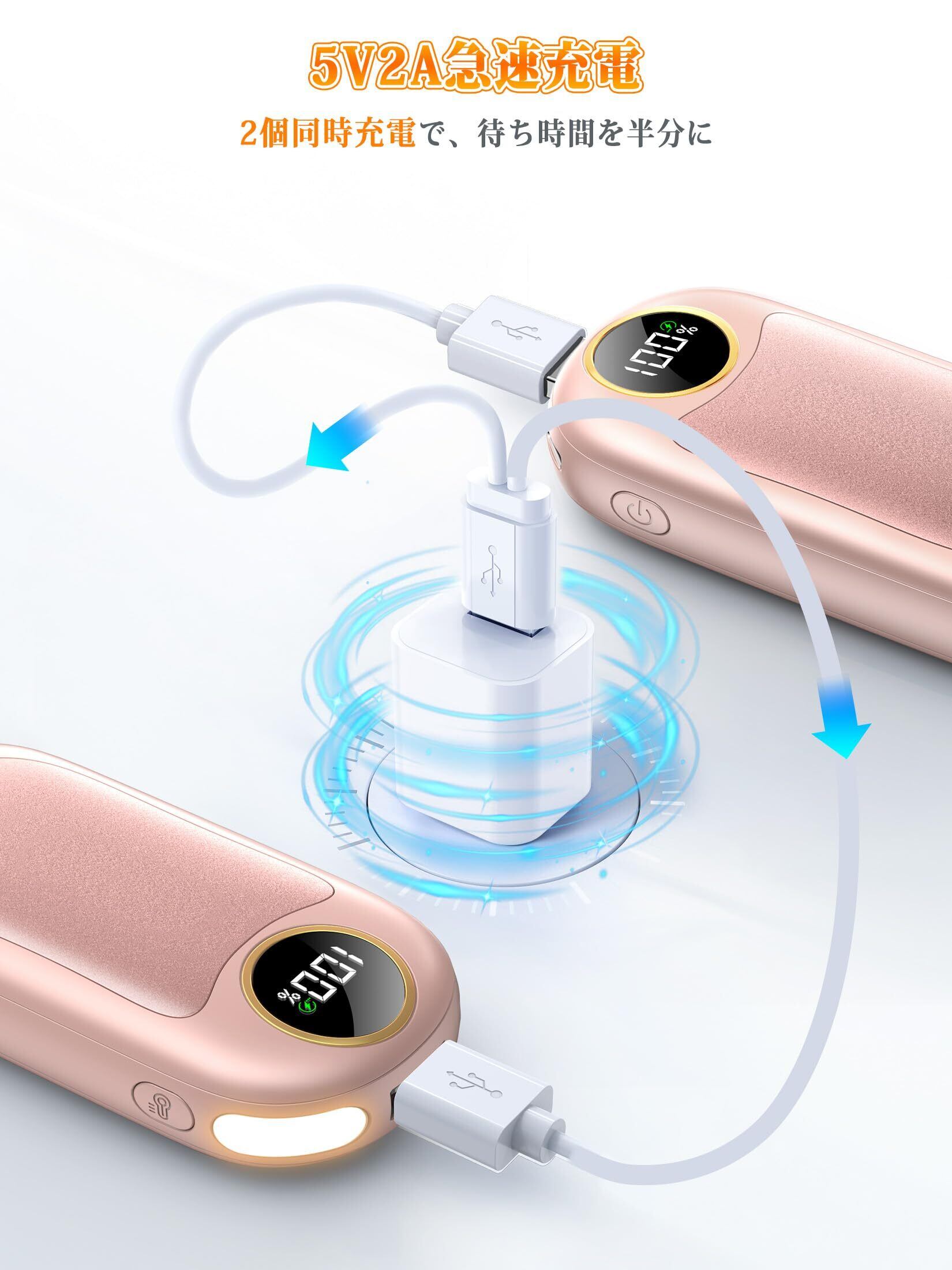 充電式カイロ 2個セット 電気カイロ 電子かいろ 大容量14000mAh 最大40時間連続使用可能 LEDライト機能 片面加熱/両面加熱 4階段温度調節 2s急速発熱 LEDデジタル表示 繰り返し使える USB充電式 かいろ プレゼント 軽量 通勤 通学 寒さ対策グッズ 防災対策 ストラップ付き かわいい ピンク