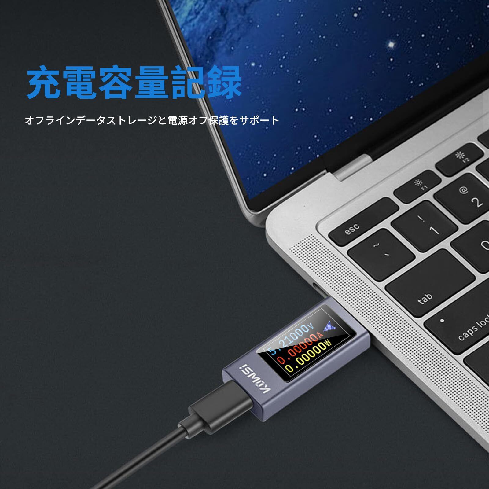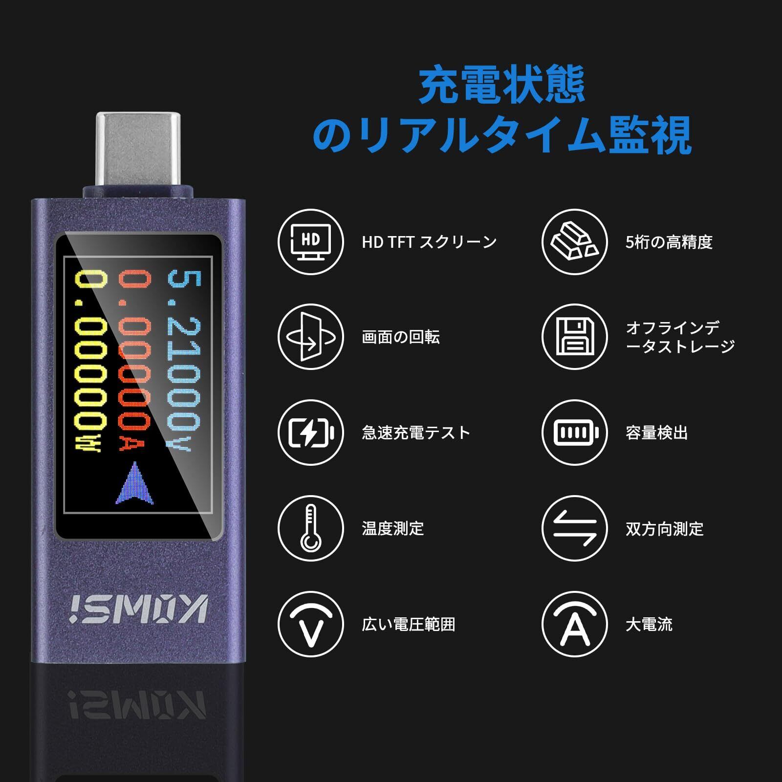 【USB Cパワーメーター】このUSBテスターは、タブレット、充電器、パワーバンク、ケーブルなどのUSB-Cデバイスの電圧、電流、電力、容量、エネルギー、時間、温度を測定できます。双方向電流とオフラインデータをサポートしています。 ストレージ。