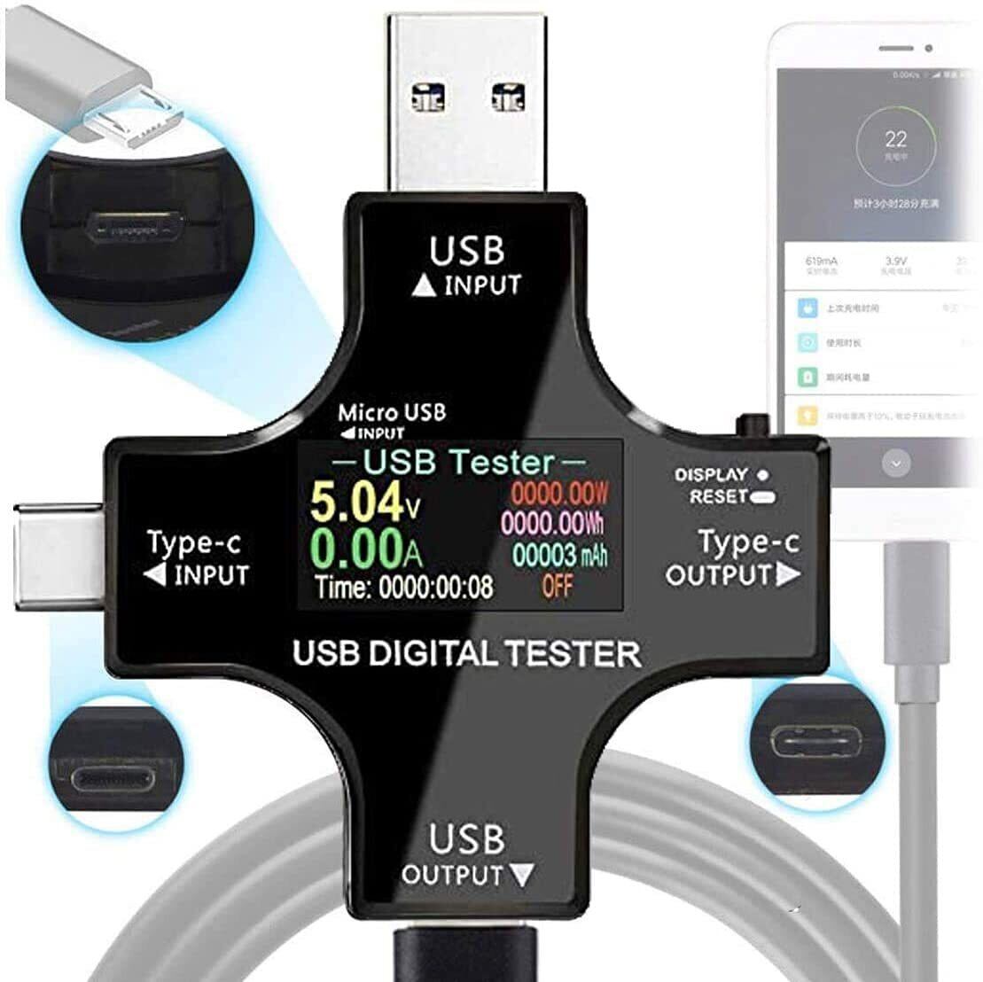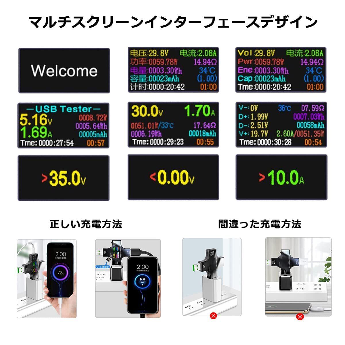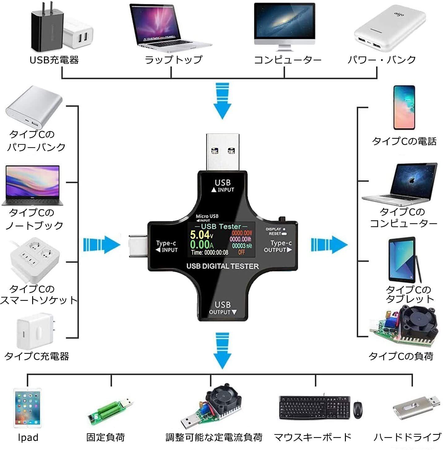 USBチェッカー:このデバイスは、Type-CデバイスとUSBデバイスの電圧、電流、容量、電力、電力、温度、負荷インピーダンス、D ++ / D電圧、充電時間を簡単にチェックできます。プラグとテストする製品は使用中に接続する必要があります。接続しないと、テストが不正確になる可能性があります