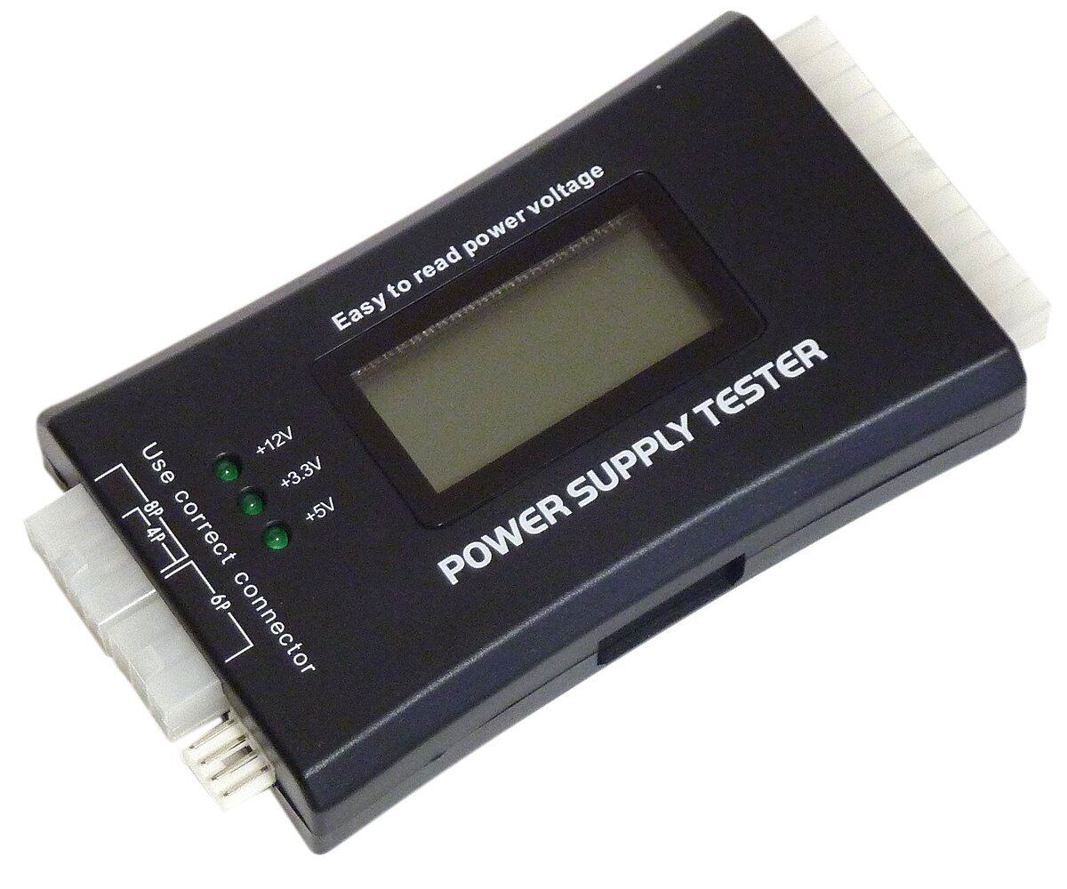 【液晶部分をキズ防止フィルムで保護していますので、フィルムを剥がしてからご利用下さい】Power Supply Tester / サイズ:120×65×厚さ20mm / プラスチック製(基板周りで利用する事も有る製品ですので、絶縁素材が理想です)