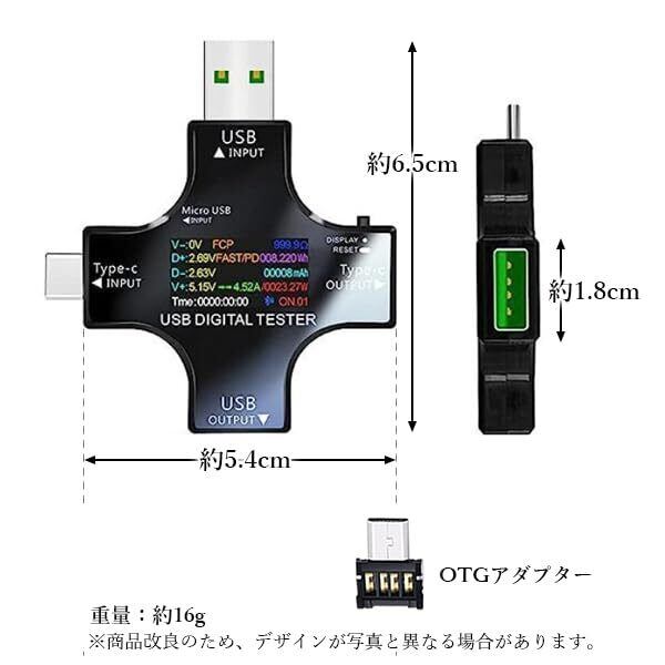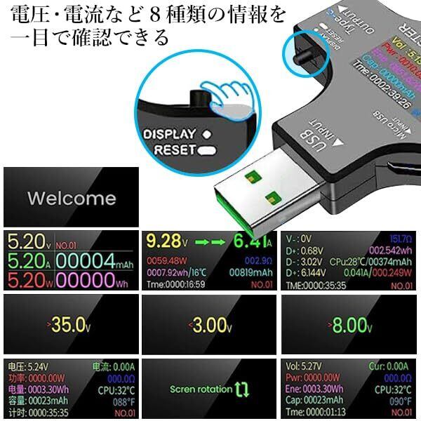 このデバイスは、Type-CおよびUSBデバイスの電圧、電流、容量、電力、温度、抵抗、充電時間などの測定ができます。正確な測定は使用中の接続が必要です。