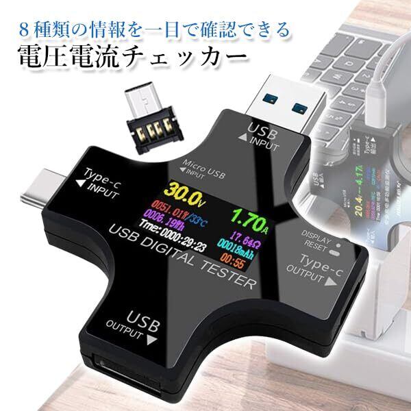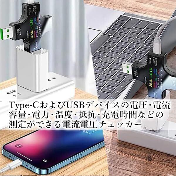 電圧電流チェッカー USB メーターテスター Type-C マルチメーターテスター 電流 電圧 抵抗 温度 通電時間 充電器負荷インピーダンスなど液晶カラーディスプレイ表示 QC2.0 3.0 急速充電対応 (BLACK)