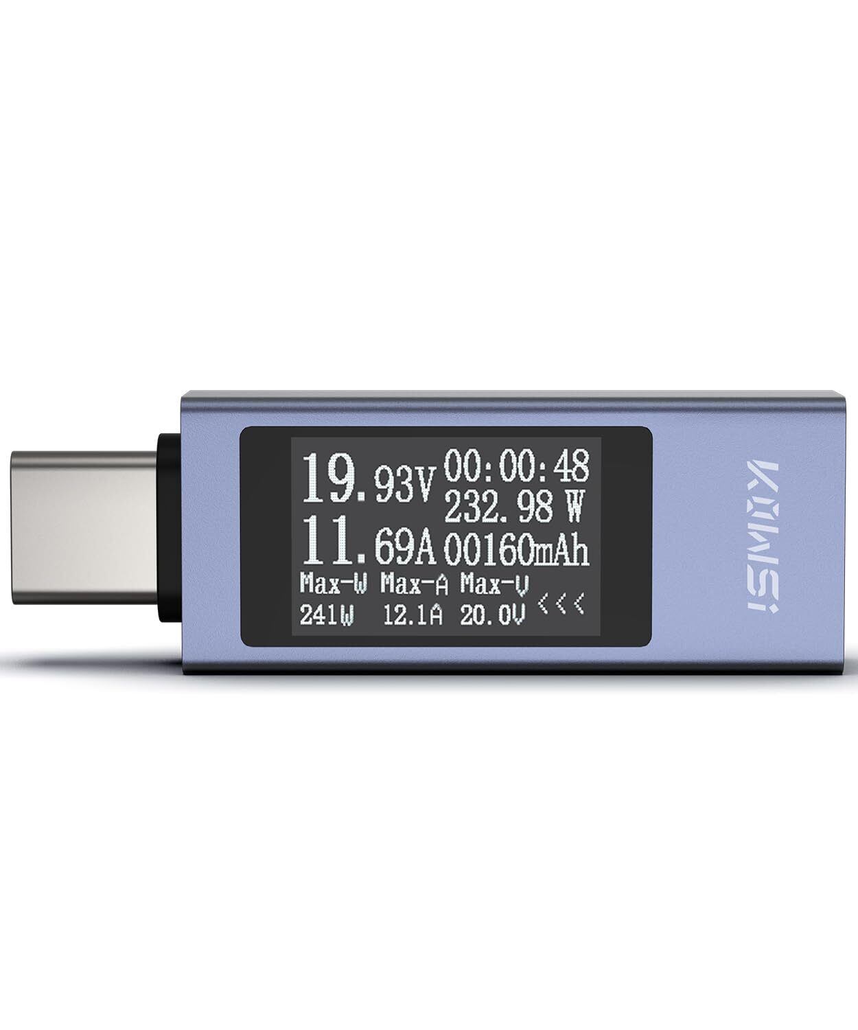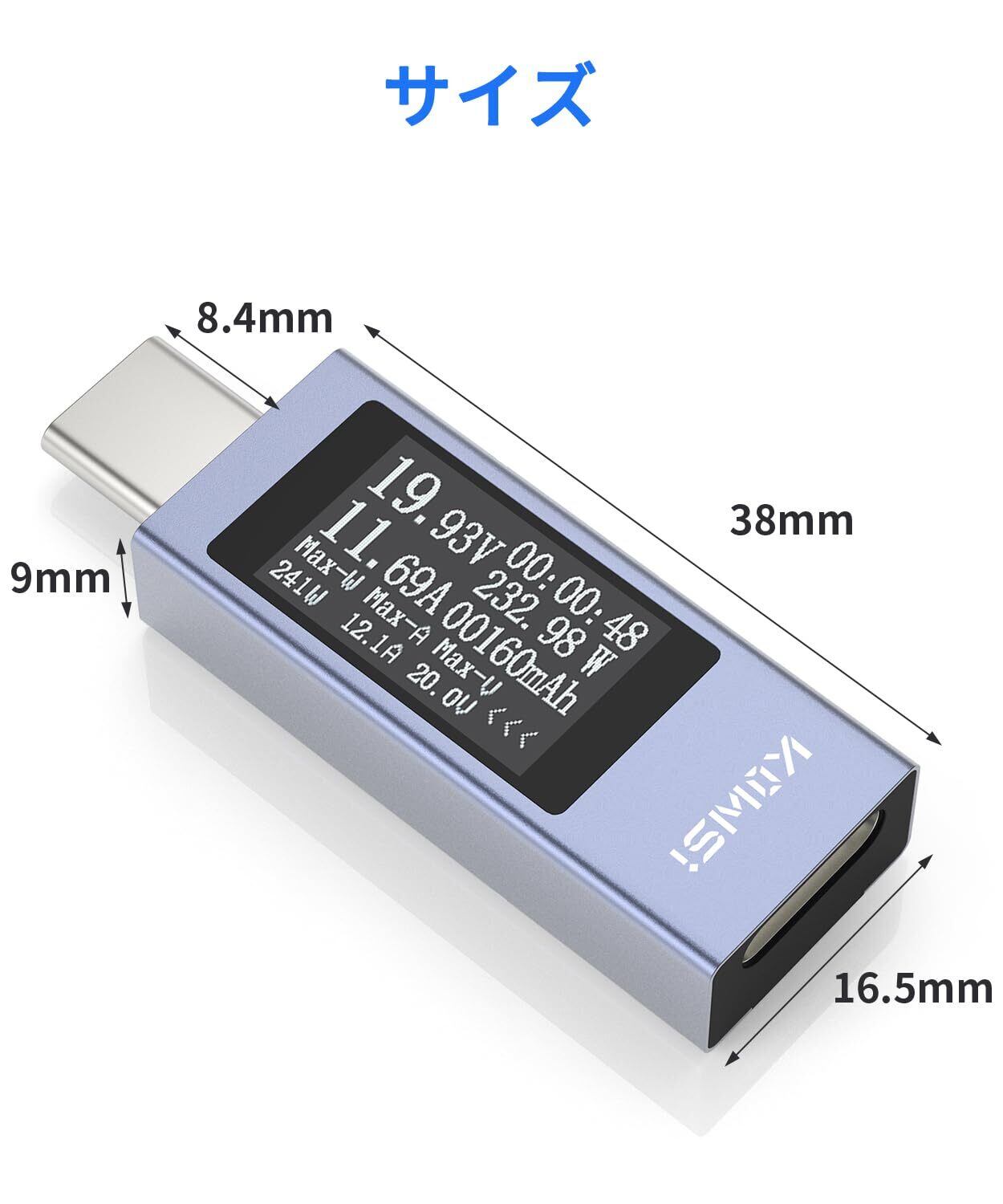 【Type-C電流電圧チェッカー】このUSBテスターはUSBCデバイスの電圧・電流・通電方向・通電時間・ワット・内部温度を簡単にチェックできる装置です。