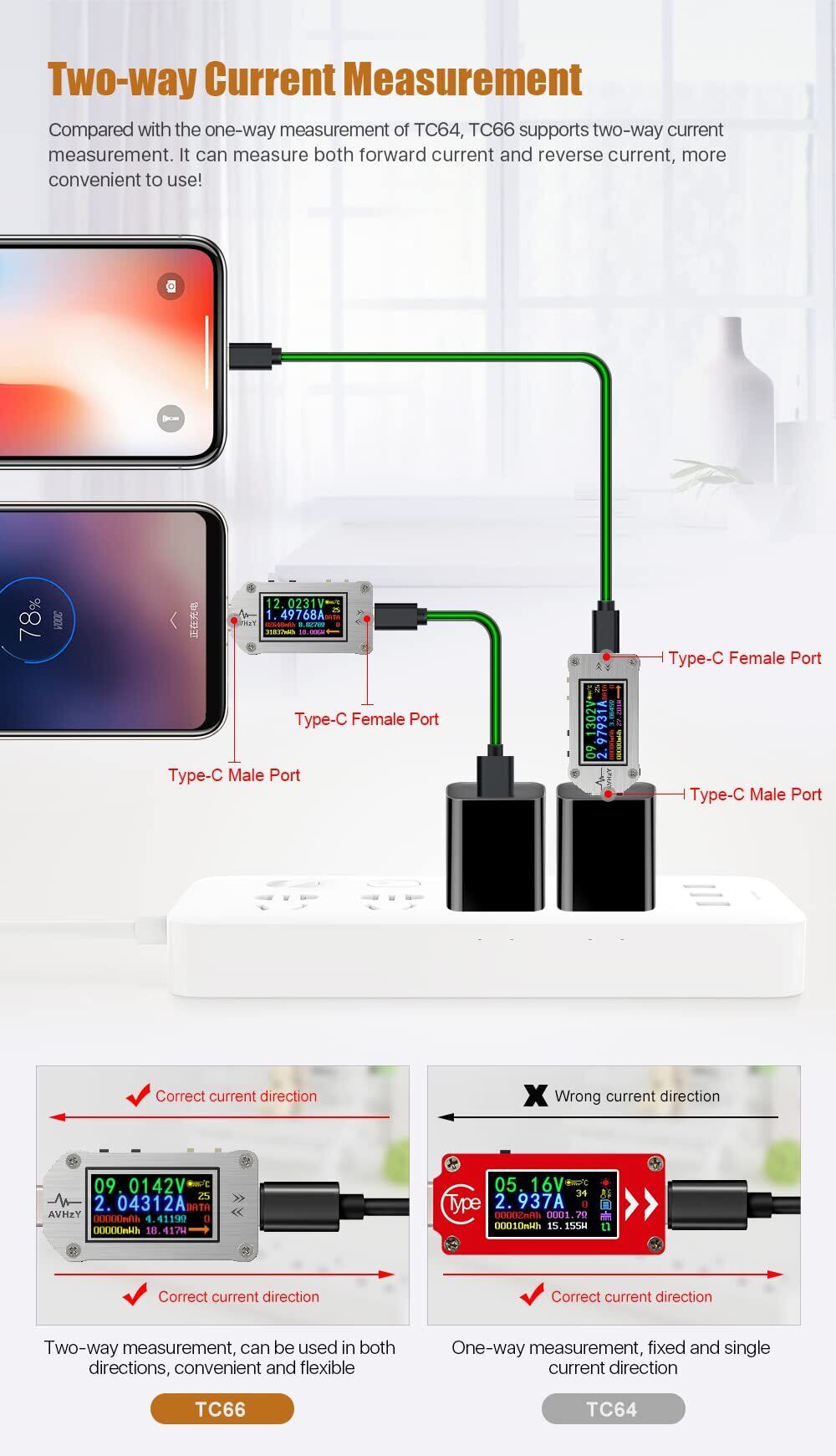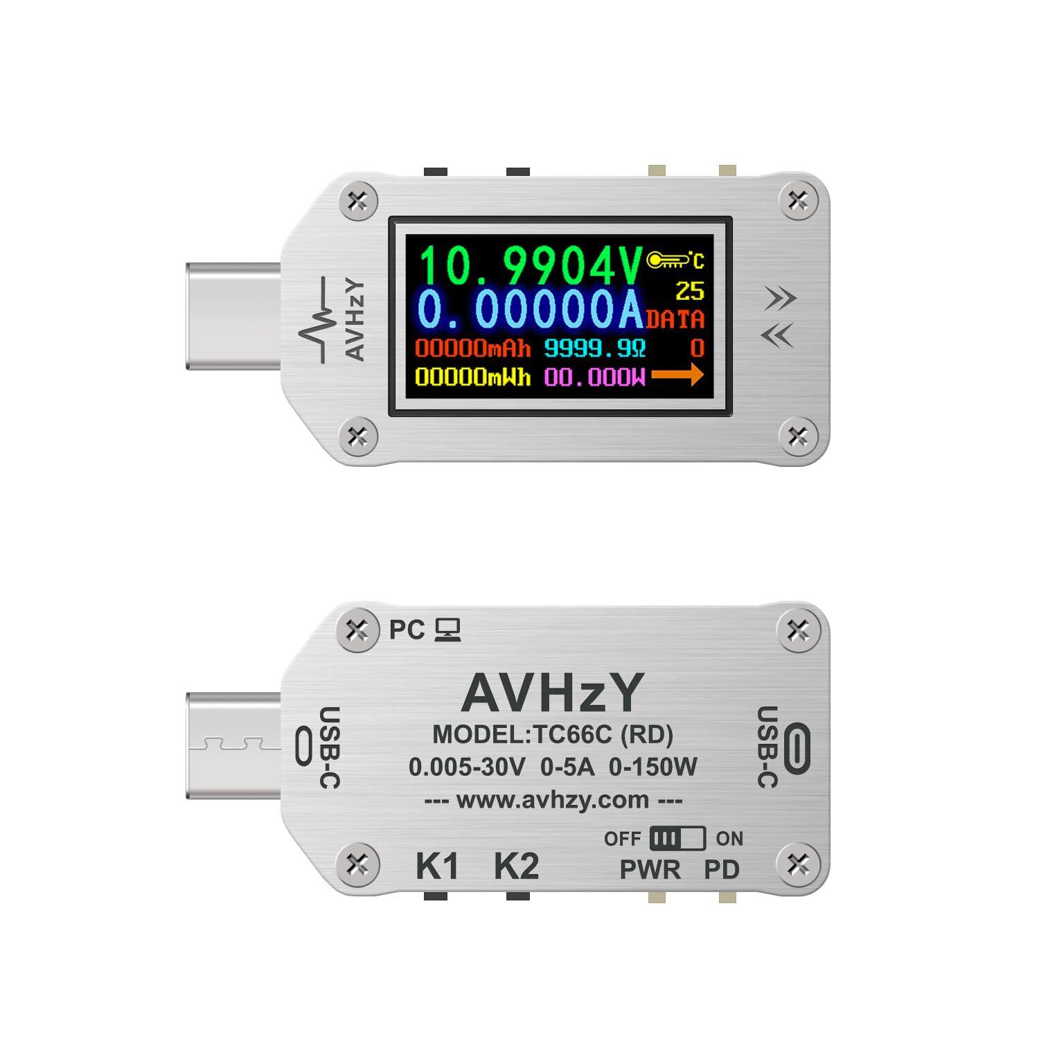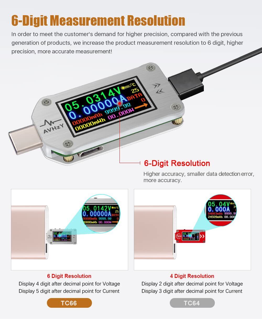 電流計負荷テスターUSB電圧電流 カラーLCDディスプレイ電流計電圧計バッテリー充電 Type C USBテスター IPSカラーLCDディスプレイTC66C